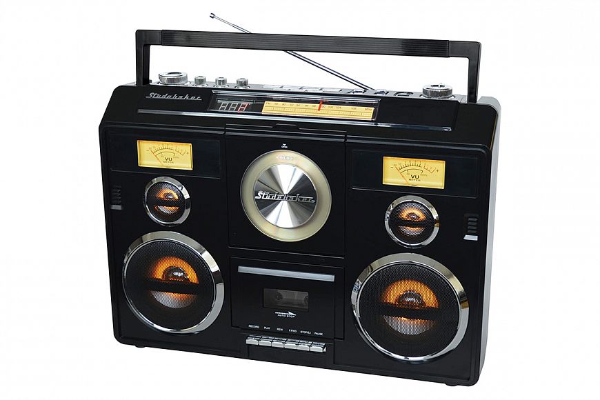 Импозантный аппарат с большими стрелочными индикаторами выпускается в трех цветах – черном, красном и розово-золотом. Номинальная мощность встроенных двухполосных акустических систем составляет 2 х 5 Ватта, они построены на двух 4-х дюймовых СЧ-НЧ динамиках и двух дюймовых твитерах. Золотистым цветом подсвечиваются как сами драйверы, так и большие индикаторы, расположенные над динамиками. Помимо кассетной деки, на передней панели находится вертикальный CD-проигрыватель. Модуль Bluetooth предназначен не только для стриминга с телефона, но и для подключения беспроводных наушников. Весит магнитола целых 6 килограммов, а портативность ей обеспечивает мощный встроенный аккумулятор.