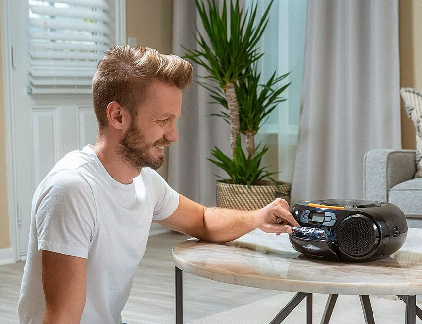 Наверное, это наиболее полно отвечающий современным требованиям портативный кассетный плеер. Его основная фича – наличие модуля Bluetooth, позволяющего слушать любимые кассеты не только через проводные затычки, но и беспроводные наушники, а также портативные колонки. Причем для подключения к ближайшим Bluetooth-устройствам будет достаточно просто нажать кнопку PLAY. Еще одна полезная функция – автоматический реверс с двумя режимами работы. Для питания понадобятся батарейки либо внешний сетевой адаптер.