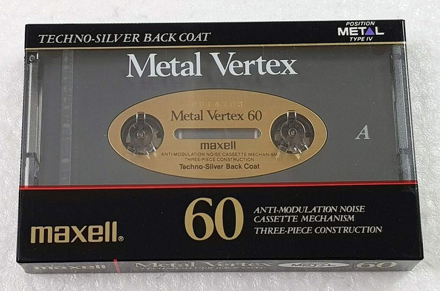 Vertex – та ещё штучка. IV тип, исключительно надежная механика и лента превосходного качества. Эти кассеты выпускались с 1991 года и являли собой апофеоз фирменного подхода к аналоговой бытовой записи. Многие аудиофилы считают, что именно кассеты Maxell занимают почетное первое место по части качества звучания – так что, цены на модель взлетели до небес.