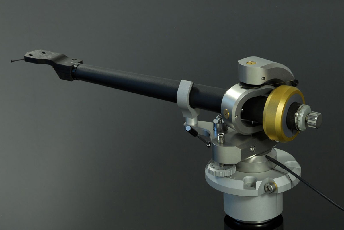 Пожалуй, самый дорогой тонарм в мире. Эта уникальная система имеет фирменную эргономичную систему установки Drop In. Основные детали выточены из нержавеющей стали, а трубка выполнена композита –сорока слоев (!) углеволокна и алюминия. Динамическая балансировка обеспечивается алюминиевой вставкой. Резонансная частота феноменальна – 4,030 Гц, звучание тонарма абсолютно волшебное – настоящий пропуск в другой мир.