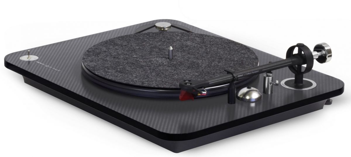 Французский бренд Elipson относительно недавно запустил производство собственных проигрывателей виниловых пластинок, и одной из главных целей было сохранить производство вертушек во Франции. И фирме это удалось, причем даже самые недорогие модели выпускаются на мощностях компании в городе Сен-Фарго в Бургундии. При этом на родине производятся до 70% комплектующих, используемых в проигрывателе. Модель Elispon Omega 100 Carbon отличается применением тонарма с трубкой из углепластика, а также корпусом из полиметилакрилата (органического стекла), усиленного слоем карбона. Опорный диск выполнен из стали, опора подшипника – из бронзы. Антискейтинг задается скручиванием проводки внутри тонарма, степень которого можно регулировать при помощи специального винта. Вертушка поставляется в комплекте с ММ-картриджем Ortofon 2M Red, двигатель поддерживает три скорости вращения, включая 78 оборотов. В целом, у французских инженеров получилась очень интересная модель, которая выглядит и играет «на все деньги».