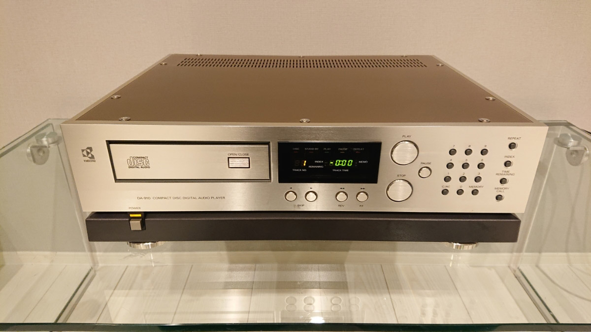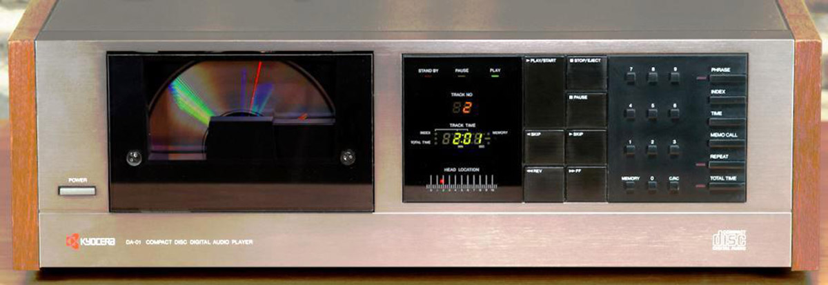 Плеер уже с традиционным треем для компакт-диска – Kyocera DA-910. Это была собственная разработка компании, которая также отгружалась как OEM для сторонних производителей (Universum и Nakamichi). Дискретная схемотехника располагалась на излюбленной компанией керамической базе. Аппарат весил 9,5 кг, стоил 250 000 йен и гарантировал АЧХ от 5 до 20 000 Гц при соотношении «сигнал/шум» в 90 дБ и 0,007% искажений.