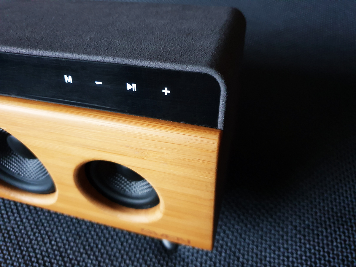 Это не первая беспроводная акустика подобного форм-фактора и конструкции, побывавшая у нас на тесте. Надо сказать, что для «настольного» прослушивания она представляется оптимальной –расположение колонки вблизи от слушателя позволяет не выкручивать громкость на максимум, а находящаяся на расстоянии вытянутой руки панель с органами управления дает возможность оперативно переключаться между треками и источниками сигнала.