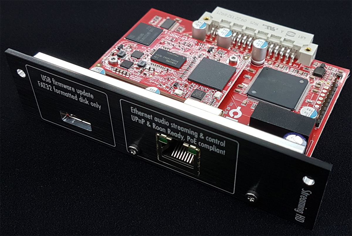 Усилитель построен по модульному принципу, что допускает достаточно богатые возможности апгрейда и адаптации функционала компонента под конкретные нужды. К примеру, в данном случае здесь установлены платы MC-фонокорректора и сетевого стримера. Кроме того, производитель предлагает еще несколько вариантов опциональных модулей, среди которых Digital Input HD Board с четырьмя дополнительными цифровыми входами – фирменным CH-Link HD, балансным AES/EBU, коаксиальным S/PDIF и оптическим TosLink. Причем, одна такая плата входит в стандартную комплектацию, но можно приобрести и установить при необходимости вторую. Следующий модуль – USB Audio Input Board, оснащенный портом USB-B для подключения компьютера в качестве источника аудио, а также Clock Synchronization Board, позволяющий как использовать внешний тактовый генератор для работы ЦАП усилителя, так и выступать мастер-генератором для других компонентов системы. Если не приобретать модуль сетевого стримера, то в стандартной комплектации вместо него будет установлена Ethernet Control Board – функционала сетевого проигрывателя она не предоставляет, но дает возможность интегрировать усилитель в домашнюю компьютерную сеть и осуществлять настройку и управление компонентом через фирменное приложение для мобильных гаджетов CH Control.
