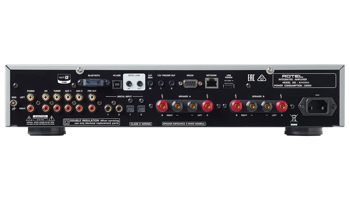 Внешне новое поколение усилителя A14 не отличается от своего предшественника, да и основные характеристики остались без изменений, поэтому для обнаружения различий приходится внимательно изучать спецификации. Первое, на что обращаешь внимание, это наличие в новой модели сертификата Roon Tested, который означает, что Rotel A14MKII будет работать в системах под управлением Roon с максимально возможным качеством и уровнем надежности. Для интеграции в подобные системы в усилителе есть порты Ethernet и RS232, равно как и 12-ти вольтовый триггер. Следующее отличие обнаруживается в виде полностью переработанного блока цифроаналогового преобразователя, построенного на чипах Texas Instruments. Из него пропала поддержка DSD, а максимально допустимое разрешение сигналов РСМ при подключении компьютера составляет теперь 32 бита при частоте дискретизации 384 кГц. С другой стороны, появилась аппаратная поддержка кодеков MQA и MQA Studio.