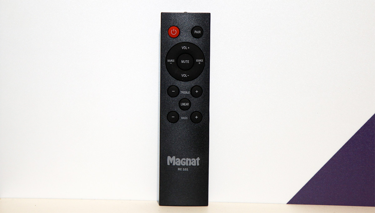 Кроме того, на задней стенке правого монитора можно найти пару разъемов RCA с переключателем типа этого входа – аналоговый линейный, либо вход фонокорректора, цифровой оптический вход Toslink и аналоговый вход на разъеме миниджек. Единственное, о чем можно пожалеть, это об отсутствии порта USB-B для подключения компьютера «по цифре» – использовать Magnat Monitor Reference 3A в качестве серьезной акустики для вашего ноутбука представляется вполне логичным. Кроме коммутационных разъемов на задней стенке правого монитора расположились акустические терминалы для подключения левого пассивного монитора, а также нажимная поворотная рукоятка, позволяющая регулировать громкость и переключать входы. Но, конечно, управлять системой удобнее всего с помощью небольшого пульта дистанционного управления, идущего в комплекте.