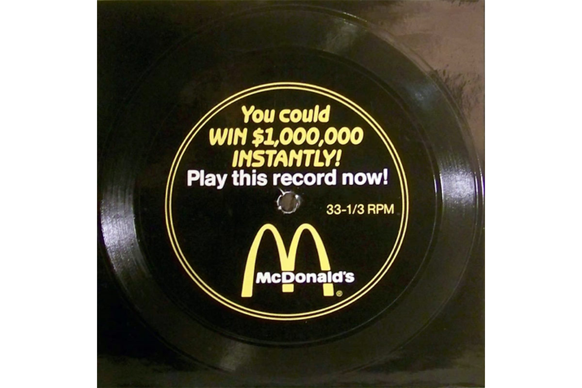 Запомнилась и масштабная рекламная кампания McDonald’s, проводившаяся в конце 80-х годов прошлого века, в которой использовались гибкие диски. Называлась она «The $1,000,000 Menu Song». Специально нанятый коллектив музыкантов исполнял ремейк хита 1974 года «Life Is a Rock (but The Radio Rolled Me)» – на музыку этой композиции был наложен полный текст меню McDonald’s. Вот только исполнители постоянно сбивались и никак не могли закончить песню. Множество таких попыток было записано на флекси-диски и издано огромным тиражом 78 миллионов экземпляров, но лишь на одной из пластинок была записана версия, где меню было пропето без ошибок до конца. Флекси раздавались посетителям в ресторанах сети, а выигравшему, то есть, получившему ту самую пластинку, причиталось ни много, ни мало – миллион долларов!