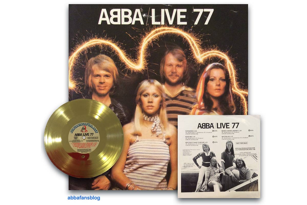 Группа ABBA на пике своей популярности тоже экспериментировала с гибким форматом, выпустив «ABBA / Live 77» – гибкую пластинку с золотистым покрытием, с одной стороны которой были записаны треки из австралийского тура группы 77 года. Интересно, что этот релиз был адресным – пластинку раздавали в качестве подарка детям, которые от имени издательского дома Jultidningsförlaget продавали на Рождество книги, газеты и журналы.