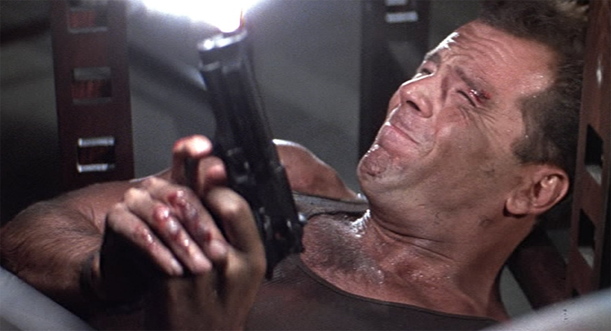 Как известно по трагедии с Бренданом Ли, заряженный даже холостыми зарядами пистолет на съемочной площадке может быть смертельно опасен. Брюс Уиллис в “Крепком орешке” смертельных травм, конечно, не получал, но при этом его слух в одном из эпизодов пострадал настолько, что актер плохо слышит до сих пор. В сцене, где Джон МакКлейн, лежа под металлическим столом, расстреливает стоящего сверху террориста, грохот холостых выстрелов многократно усиливался столешницей – за несколько дублей актер умудрился повредить барабанные перепонки своих ушей так, что потребовалось вмешательство врачей.