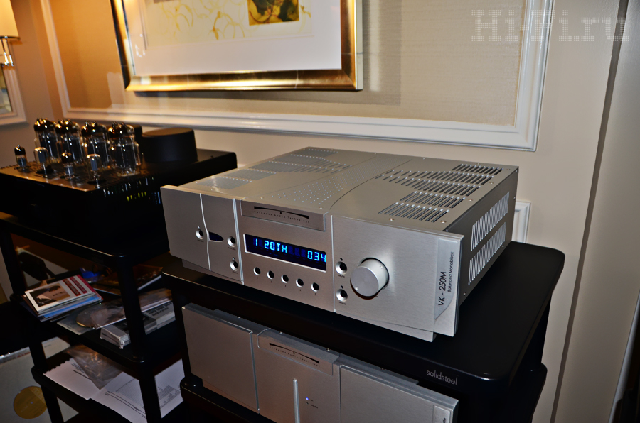 Интегрированный усилитель VK-250M от BAT – массивный моноблок, использующий философию балансного пути сигнала (как впрочем, и любые компоненты этой фирмы) и нулевую обратную связь. Способен выдать до 300 Вт при нагрузке 4 Ом или в два раза меньше при 8 Ом.
