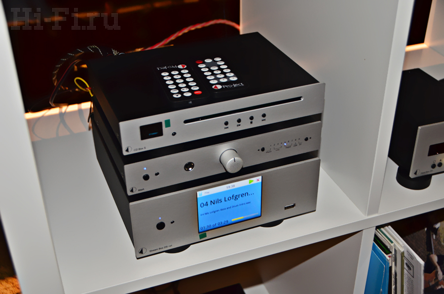 Компактные компоненты (масштаб – примерно с компакт-диск) австрийской компании Pro-Ject под названием Box Designs занимали целую комнату, доминируя даже над основными продуктами компании – виниловыми проигрывателями. Хотя генеральный директор фирмы Хайнц Лихтенеггер считает, что это очень важное направление, на котором обязательно нужно работать, и что за ним будущее. Компания добавила в линейку компактных компонентов бюджетный ЦАП DAC Box E, оснащенный коаксиальным и оптическим входом и обычными RCA-выходами. На фото же целая компактная система из CD-проигрывателя CD Box S, усилителя MaiA и стримера Stream Box DS net.