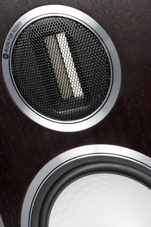 В Monitor Audio Gold 100 реализованы фирменные запатентованные технологии, знакомые по другим моделям компании. C-CAM (Ceramic-Coated Aluminium/Magnesium) указывает на изготовление диффузоров СЧ/НЧ излучателя из алюминиево-магниевого сплава с керамическим покрытием поверхности. Данное решение доказало свою эффективность в плане приближения к желаемому балансу высокой жесткости, малой массы и хорошего внутреннего демпфирования диафрагм. На поддержание достаточно высокой жесткости, а, следовательно, и поршневого характера работы диффузора, направлена также технология RST (Rigid Surface Technology), в соответствии с которой на поверхности диффузора выдавливается множество расположенных концентрическими рядами сферических углублений разного размера. C-CAM и RST перешли нынешним акустическим системам серии Gold в наследство от предыдущих поколений линейки: Gold GR и Gold GS. Разумеется, в современных «золотых» колонках Monitor Audio эти технологии реализованы на новом — более высоком уровне. В контексте отличий сегодняшних АС серии Gold от прежних компания в числе прочего указывает на ужесточение допусков при производстве ленточного преобразователя по сравнению с такой же лентой акустических систем поколения Gold GX. Излучатель конструктивно близок тому, что применяется во флагманской линейке Monitor Audio Platinum. Производитель уделяет особое внимание подбору пар твитеров для колонок, считая это наиболее важным для получения высококачественного звучания.