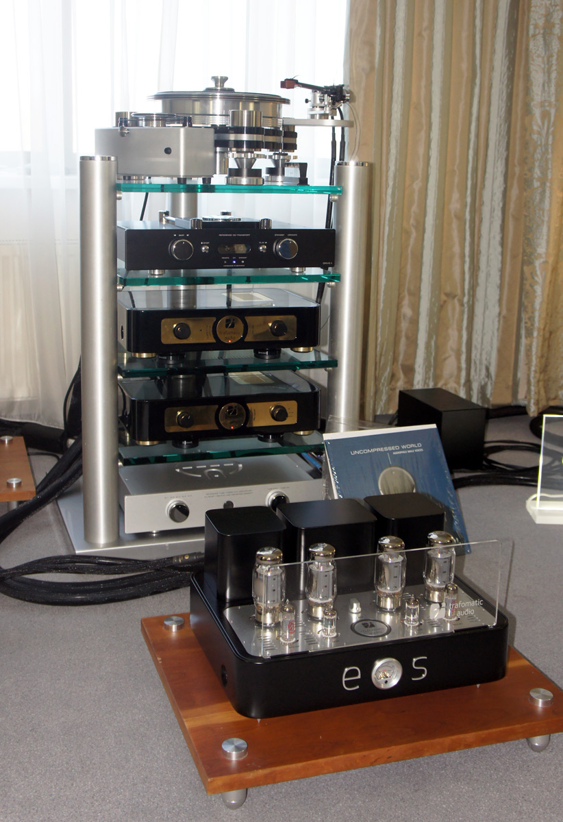 Вторая сверху в иерархии проигрывателей виниловых пластинок американской VPI модель Avenger Reference с фонокорректором Trafomatic Audio Reference Phono One в качестве аналогового источника и произведения немецкого инженерного искусства - CD-проигрыватель Accustic Arts DRIVE II и внешний ЦАП Accustic Arts TUBE-DAC II mk2 в качестве цифрового. Ламповое усиление от компании Trafomatic Audio - предварительный усилитель Reference Line One и усилитель мощности EOS power. Акустические системы Audio Physic Avantera.