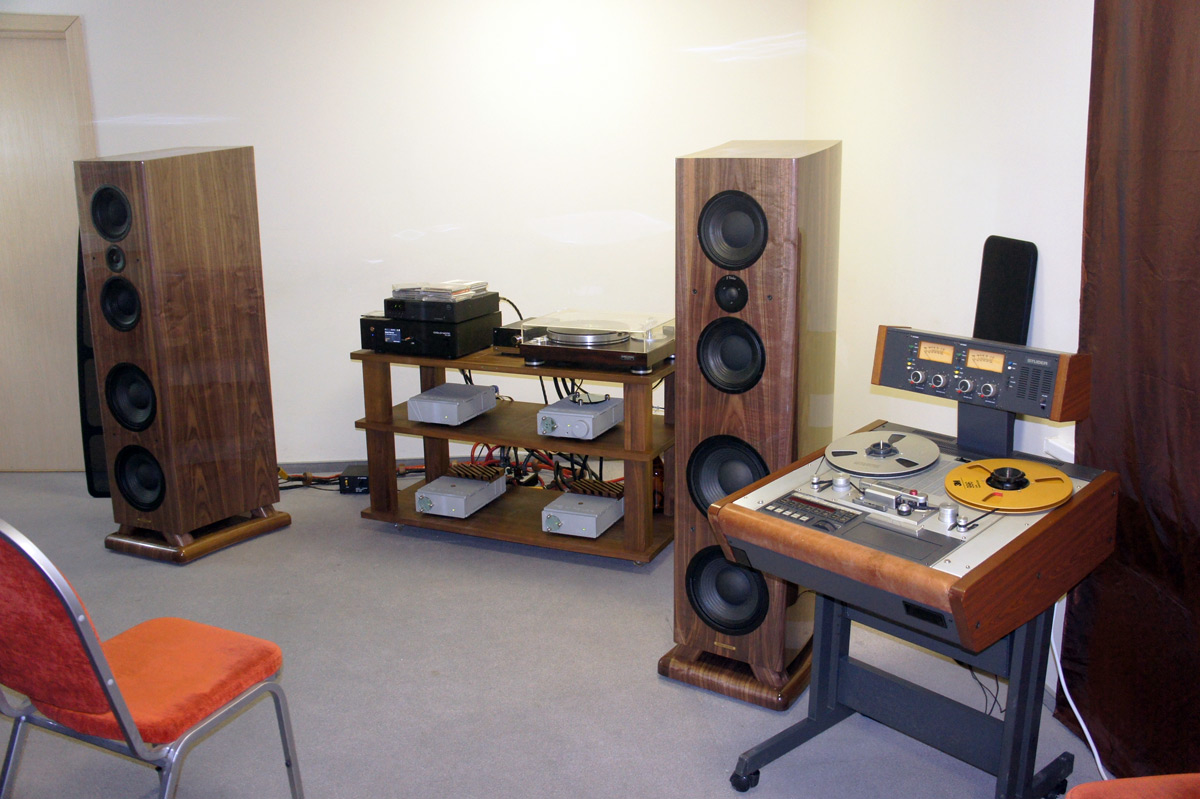 Данную систему мы тоже бы отнесли к творчеству отечественных производителей, хоть акустика Sonus Victor и производится в Италии. Но ее разработчик Виктор Поркалов - наш бывший соотечественник, потому это утверждение верно. Ну а Tarim Audio - детище Александра Тарима - нашего соотечественника без всякого "бывший". На выставке была представлена система в составе акустических систем Sonus Victor Luna и усиления Flood House от Tarim Audio - предварительного усилителя с выносным блоком питания и двух монофонических усилителей мощности. Отметим, что в этой системе был представлен наиболее полный спектр возможных источников аудио - проигрыватель виниловых пластинок Micro Seiki BL-77 с фонокорректором EAR 834P, сетевой плеер Gold Note DS-1000, CD-проигрыватель LINN Ikemi и роскошный катушечный Studer A812.