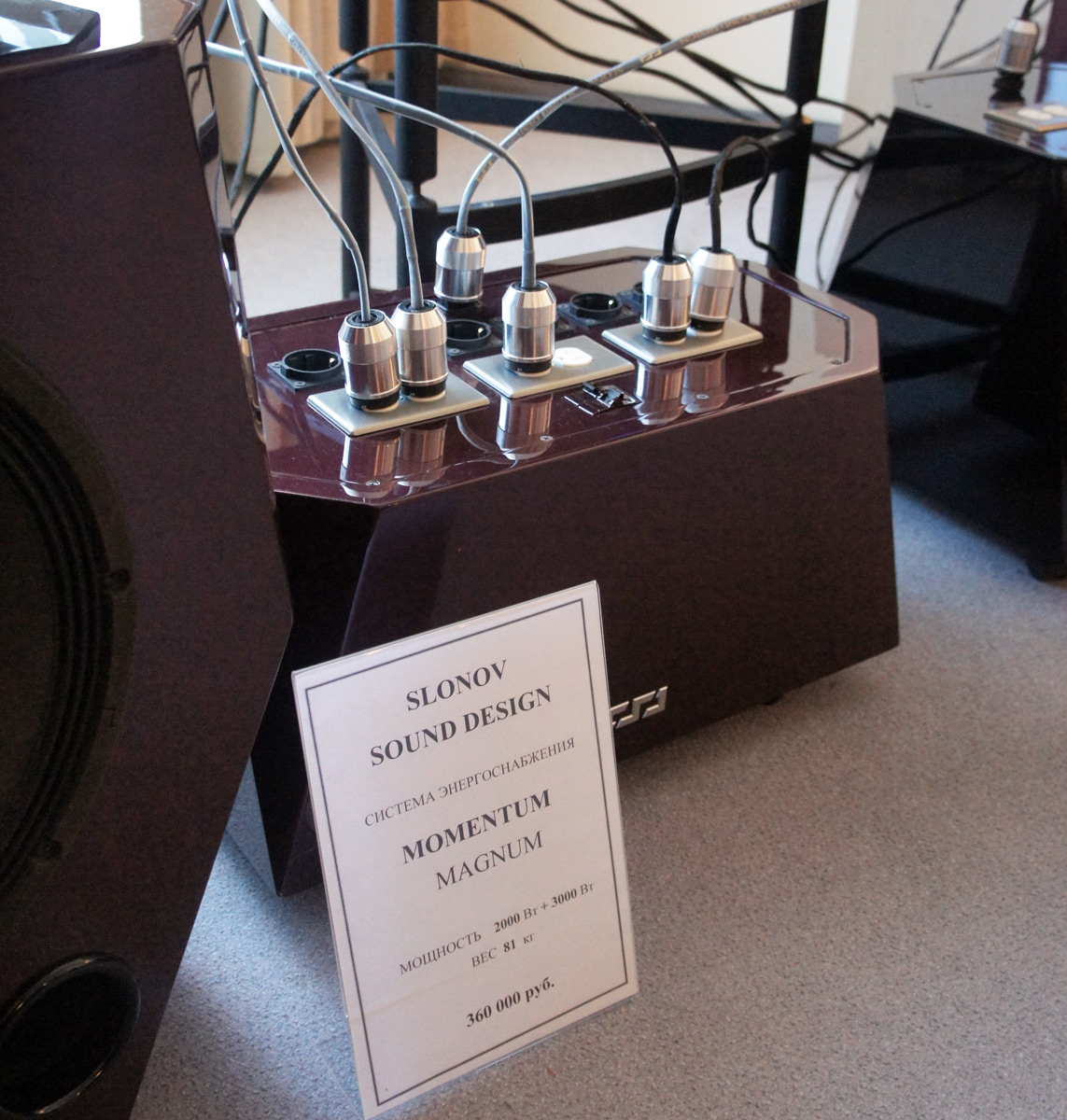 И снова хорошо знакомый нашим читателям Алексей Слонов представляет на выставке отчет о проделанной работе за прошедший с предыдущего Hi-Fi & High End Show год. Подробно о системе Model 240 MkII мы рассказывали совсем недавно. На выставке же была предоставлена возможность даже закоренелым скептикам убедиться в эффекте от применения фирменных систем энергоснабжения Momentum - менее мощной Magnum и старшей - Maximum.