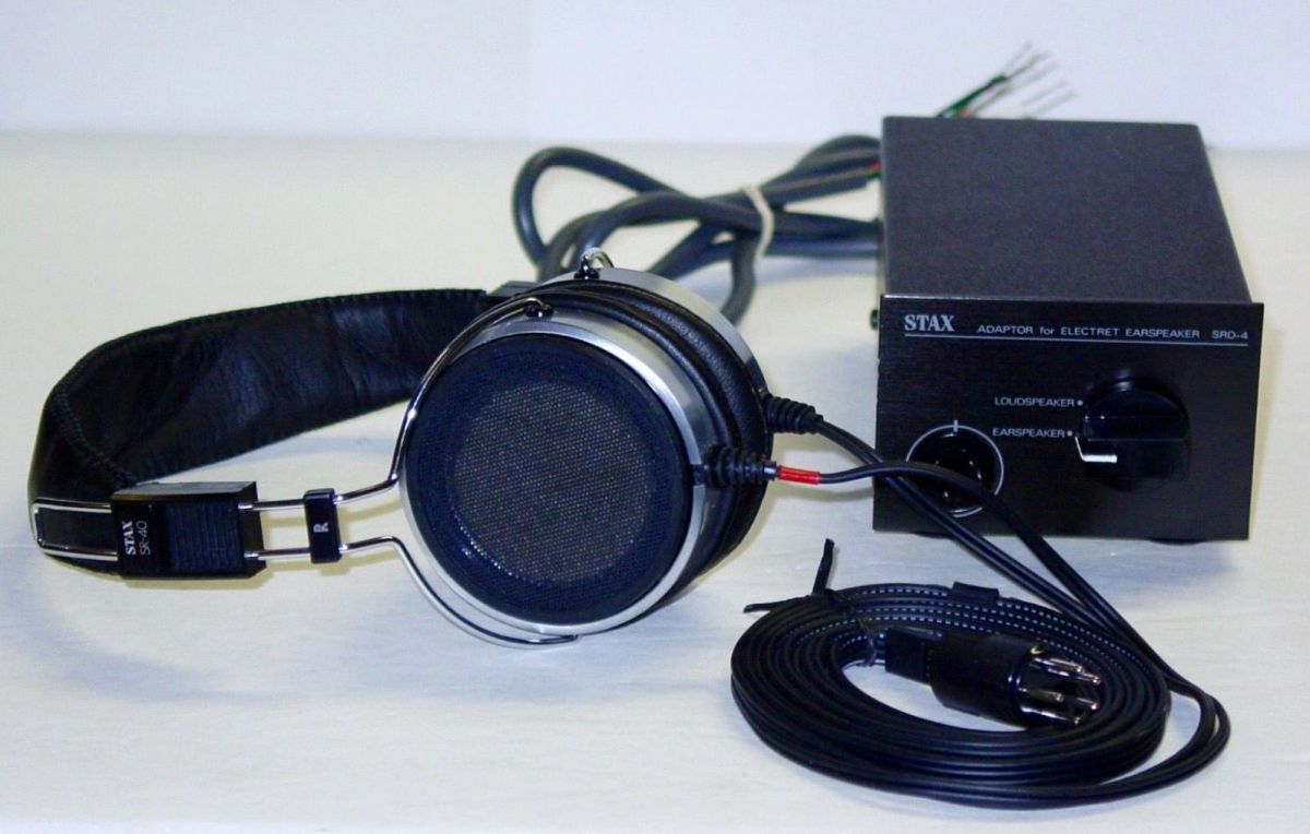 Пример реализации еще одной технологии преобразования – электретной. Во многом она схожа с электростатической, за исключением одной существенной детали. Электретам, в отличие от электростатов, не требуется поляризующее напряжение, поскольку они изначально обладают собственным зарядом. Поэтому их можно использовать без специального адаптера, правда, им требовался специальный согласующий трансформатор, который не всегда можно было встроить внутрь чашек. Головные телефоны такого типа производили многие компании, само собой, Stax также участвовала в процессе. Модель Stax SR-44 включала в себя наушники SR-40 и отдельный трансформатор SRD-4. По качеству звука она была близка к электростатическим моделям фирмы, однако по мере того, как становилось очевидным отсутствие значимых преимуществ в звуке при высоких требованиях к усилителям, электретные наушники вышли из моды.