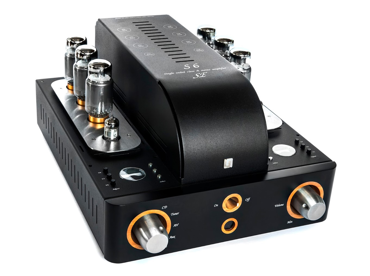 Unison Research S6 – ламповый интегральный усилитель класса «А». В новой версии модели конфигурация выходного каскада выполнена по однотактной ультралинейной схеме, работающей в классе А. Была изменена конфигурация подстройки тока смещения ламп. Если раньше она выполнялась полностью в автоматическом режиме, то в новом S6 применяется смешанный режим: около 2/3 смещения происходит автоматически, а треть – фиксированно. Фиксированную подстройку тока смещения каждой лампы можно изменять с помощью потенциометра и встроенного амперметра (для каждого канала). При выборе гибридного типа подстройки поляризации возрастает эффективность работы выходного каскада и уменьшается коэффициент обратной связи, результатом чего является заметное улучшение звучания. Новые выходные трансформаторы имеют фиксированное выходное сопротивление 6 Ом. Но S6 позволяет подключать акустические системы с сопротивлением 4-8 Ом.