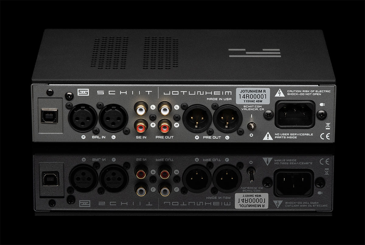 В остальном это старый знакомый Schiit Jotunheim – модульный усилитель для наушников, допускающий установку опционального модуля мультибитного USB ЦАП. Аппарат оснащен как балансной, так и небалансной аналоговой коммутацией, причем здесь есть и выходы на разъемах RCA и XLR, что позволяет использовать компонент как предварительный усилитель.