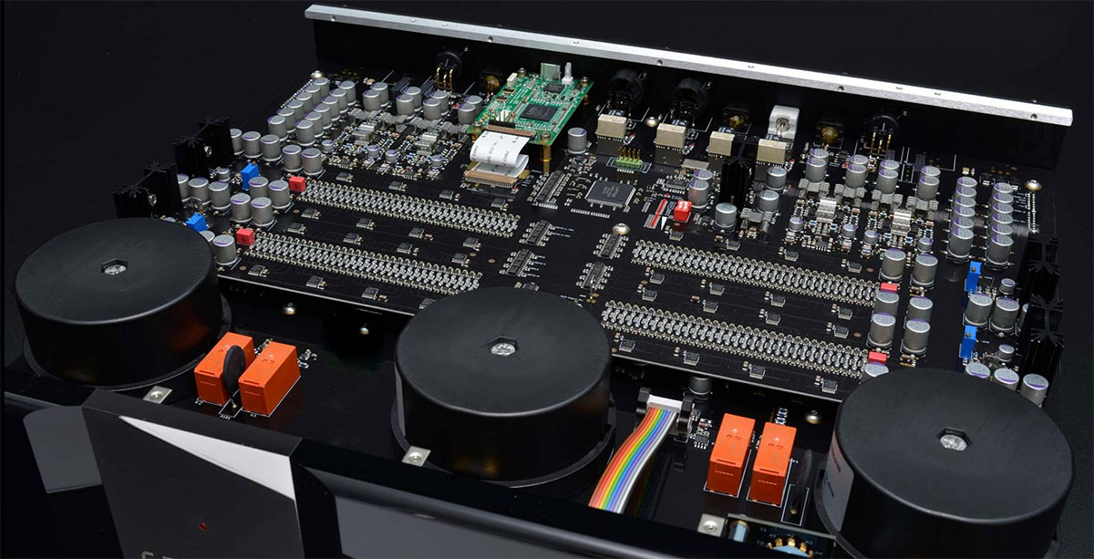 В TIDAL Camira DMC организовано полностью раздельное питание — каждый функциональный модуль питается от собственного источника, причем, организован двойной запас по мощности. Сохранена здесь и фирменная фишка конструкции — единственный кабель внутри корпуса — это серебряный полый провод Tidal Reference, идущий от силового разъема IEC к основной плате. В компоненте использованы 2 x 58 низкоимпедансных конденсаторов ESR, а резисторы «лестницы» преобразователя имеют допуск 0,01% от номинала.