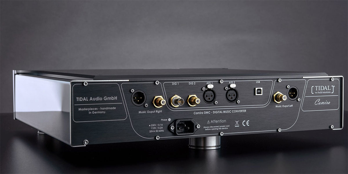 В каждом канале TIDAL Camira DMC установлен 3-ступенчатый входной фильтр. Новинка оснащается фемтосинхронизатором со сверхнизким уровнем шума (– 169 дБ). Кроме привычного для внешнего ЦАП набора цифровых входов, компонент оснащен портом USB type B для подключения компьютера. Аналоговые каскады полностью дискретные, работают в классе A. Для подсоединения усилителя предусмотрен балансный выход на разъемах XLR и несимметричный на разъемах RCA.