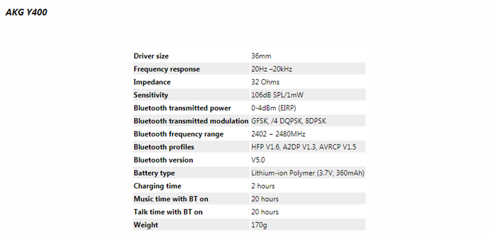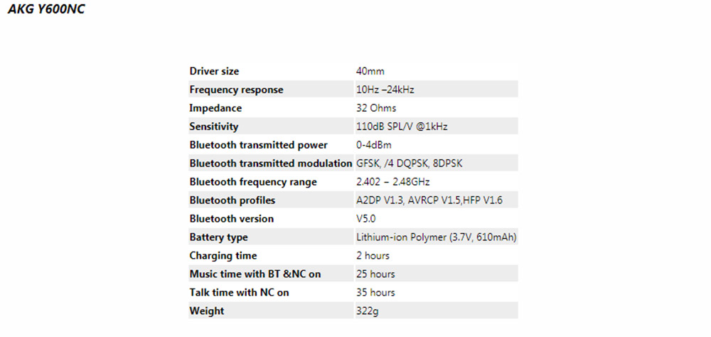 Отличаются наушники и ёмкостью встроенного аккумулятора, что определяет их автономность. Старшая модель AKG Y600NC способна проработать на одной зарядке аккумулятора 25 часов, а Y400 — всего 20. В активе Y400 компактная складная конструкция и небольшой вес — они почти вдвое легче старшей модели — всего 170 г. Отличается и конструкция амбушюров из пены с эффектом памяти и протеиновой кожи: у старшей модели амбушюры окружают ухо, а у младшей — прикрывают его поверх.