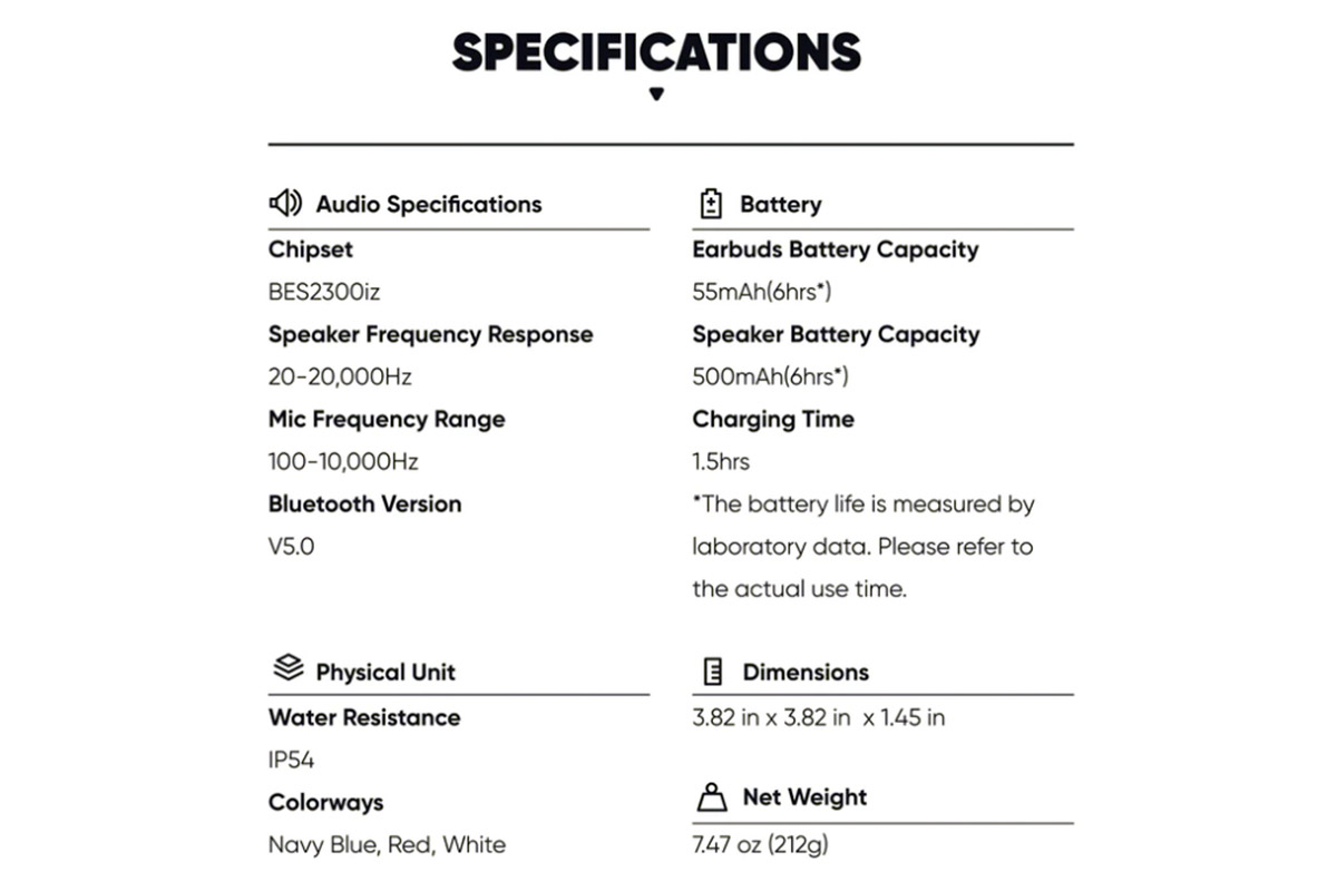 Из прочих особенностей Duolink SpeakerBuds, достойных упоминания, отметим защиту от влаги по стандарту IP54 и применение шумозащитных микрофонов как в колонке, так и в наушниках, которые способны обеспечить разборчивую речь при телефонных переговорах.