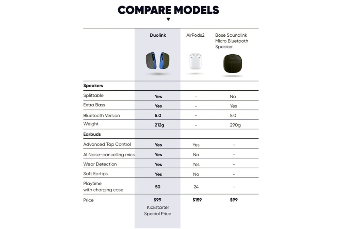 В рамках акции Early Bird систему Duolink SpeakerBuds можно приобрести всего за 89 долларов США. После окончания процедуры краудфандинга стоимость гаджета составит 149 долларов США. Первые экземпляры планируется отгрузить до конца 2020 года.