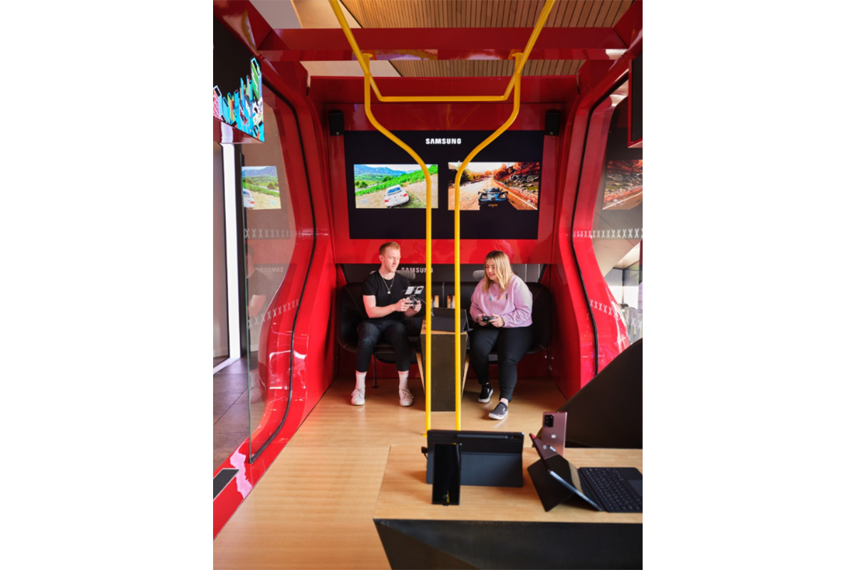 Гейминг в дороге: Оказавшись в автобусе, пользователи могут сыграть на Samsung Galaxy Note20 с контроллером Xbox One, а при желании еще и сразиться с другими пассажирами, поскольку устройства легко отражаются на встроенном в инсталляцию 82-дюймовом телевизоре Samsung QLED 8K. Для этого достаточно просто активировать функцию разделения экрана.