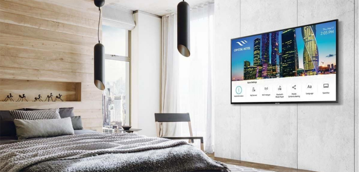 Гостиничные телевизоры компании обеспечивают высокое качество изображения в разрешении UHD. Системным администраторам они позволяют настраивать главное меню для персонализированного взаимодействия с клиентами и централизованно управлять дисплеями в удаленной режиме. Гостям доступен просмотр фильмов и телепрограмм, а также, при наличии дополнительного оборудования, управление своим номером: шторами, термостатом и освещением.