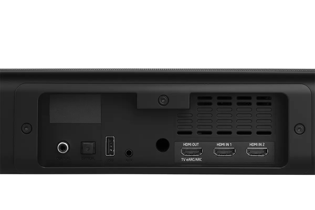 Саундбар оснащен коммутацией HDMI с прддержкой 4K, Dolby Vision и eARC. Кроме того, здесь есть коаксиальный и оптический цифровые входы, а также порт USB и аналоговый вход на разъеме миниджек 3,5 мм. Для прямой трансляции музыки с мобильных гаджетов на борту новинки есть адаптер Bluetooth версии 4.2.