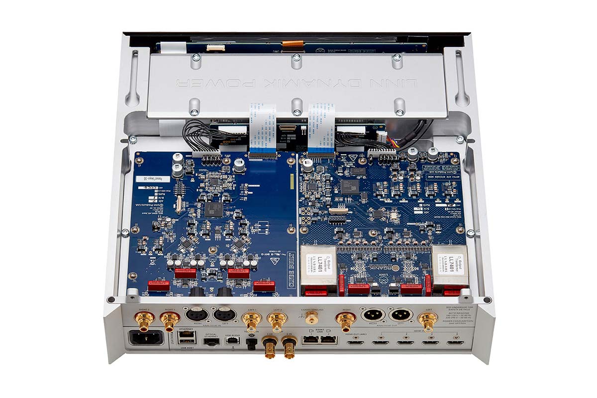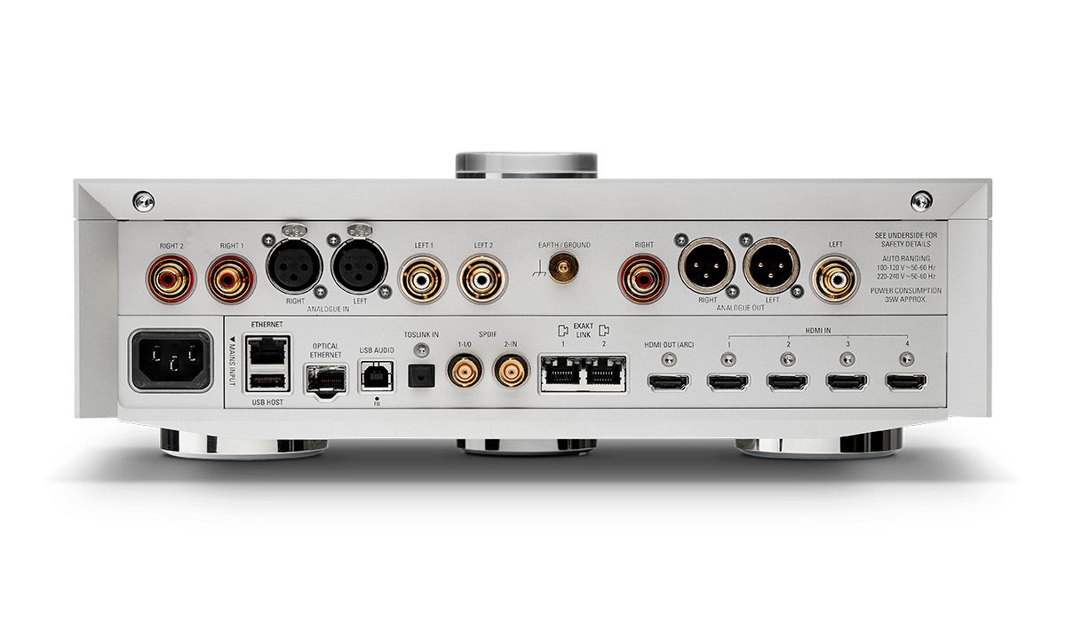 В LINN Klimax DSM реализована возможность интеграции в домашнюю компьютерную сеть по Wi-Fi, а также прямой трансляции музыки с мобильных гаджетов по Bluetooth. Кроме того, в комплектации AV проигрыватель оснащается четырьмя входами и одним выходом HDMI с поддержкой обратного канала eARC. Аналоговая коммутация включает два несимметричных и один балансный вход, а также балансный на разъемах XLR и небалансный на RCA выход.