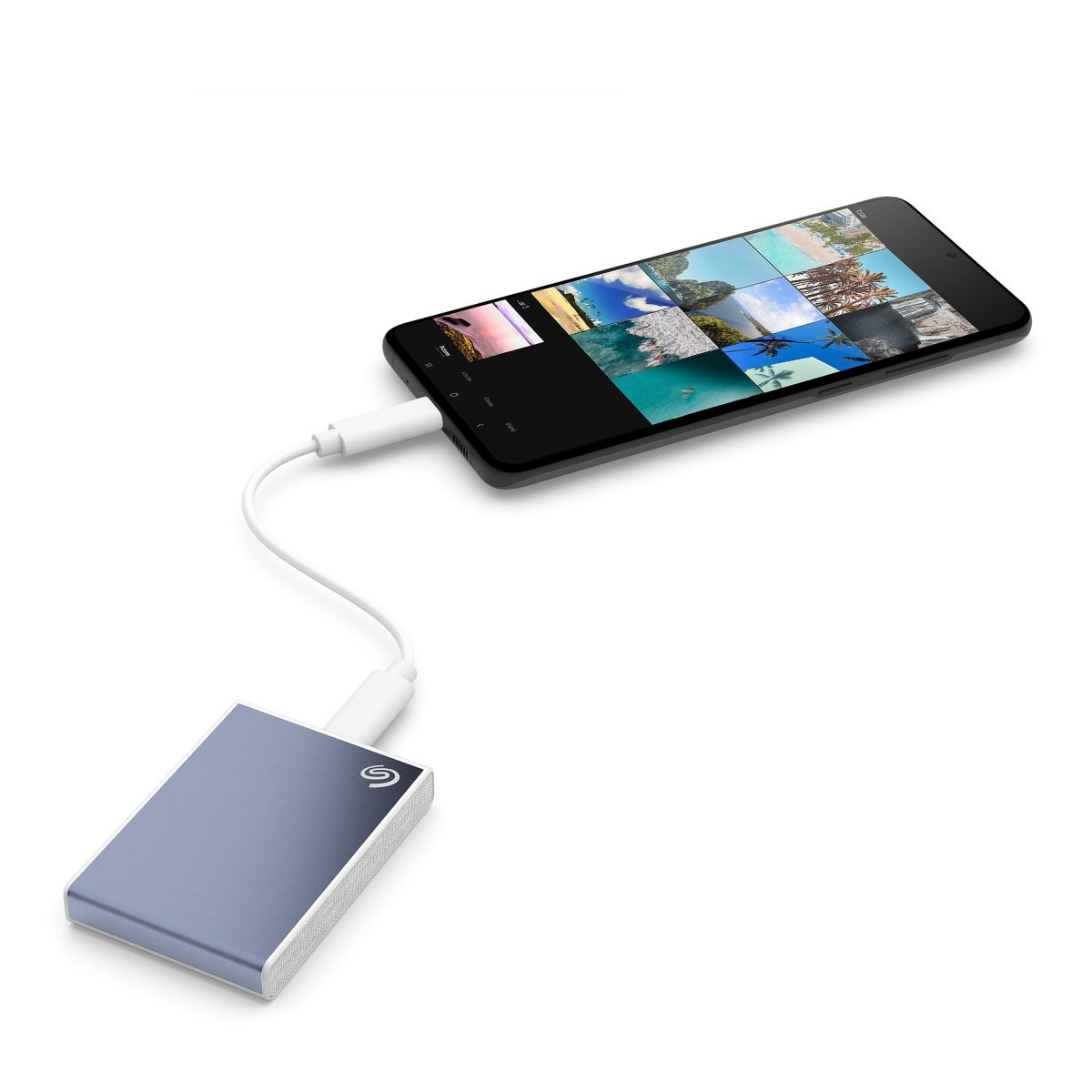 Seagate One Touch SSD отформатирован в файловой системе exFAT и сразу готов к работе с компьютерами на базе ОС Windows и macOS. Накопитель с портом USB-C (USB 3.2 Gen 2) совместим с устройствами, оснащенными портами USB-C и USB 3.0. Оба кабеля входят в комплект поставки. Кроме того, он работает с мобильными телефонами на базе ОС Android, а приложение Seagate Mobile Touch поможет скопировать видео, фотографии и другие файлы, чтобы освободить место на устройстве. Накопитель выдерживает падение с высоты до 2 метров — большое преимущество для тех, кто работает в дороге.