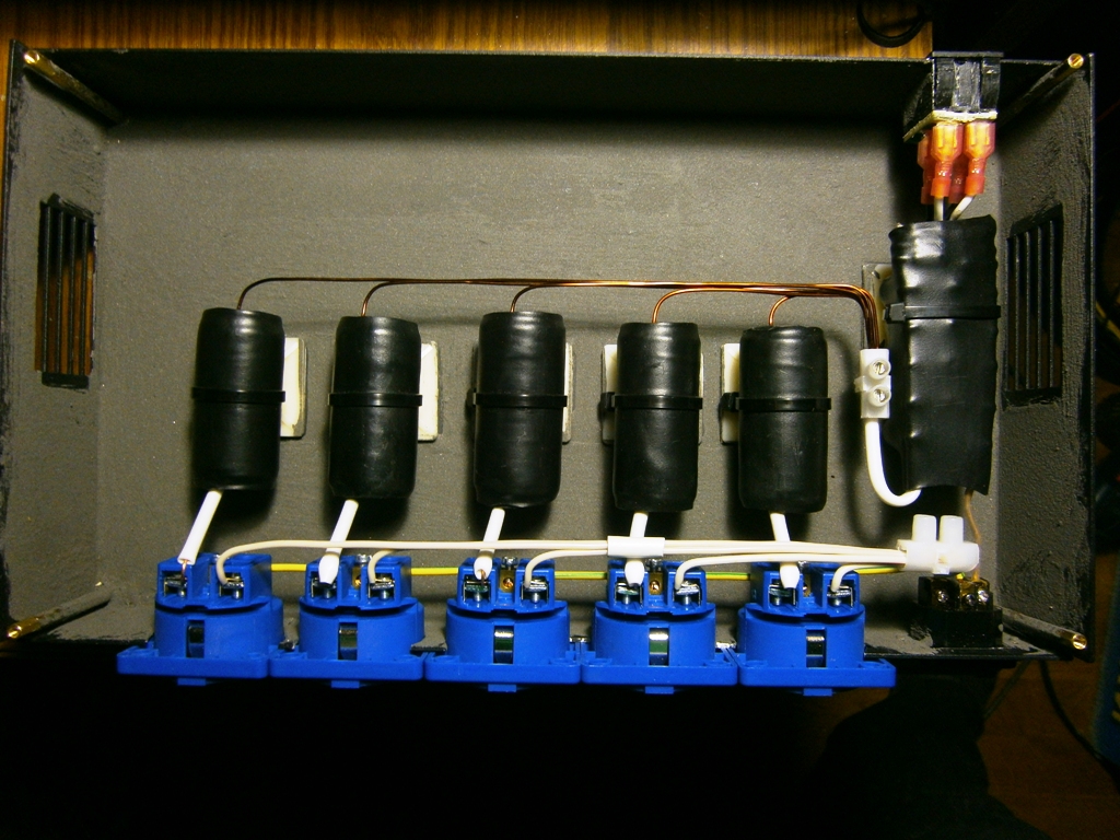 Этот кондиционер я даже не фоткал, вот есть фото такого же кондиционера, но в другом корпусе.  Эти бочёночки и есть модули фильтров. На корпус изнутри нанесено универсальное покрытие для электронных компонентов, созданное в лаборатории FelixAudio