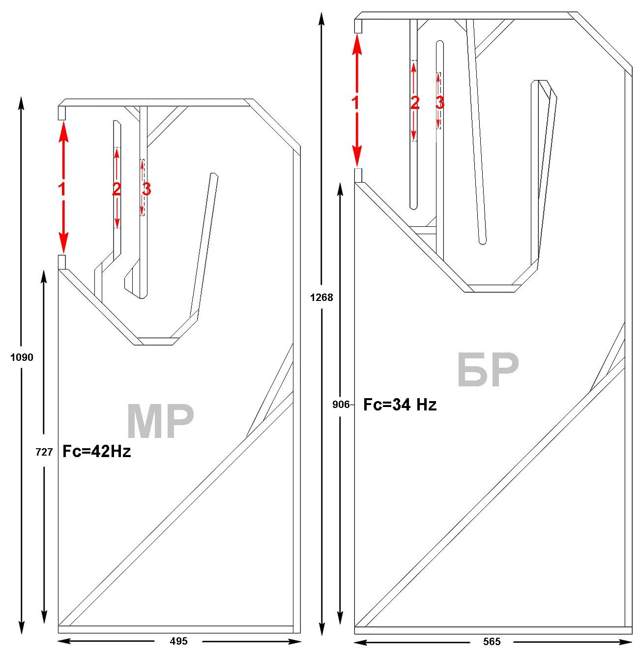 Эти рупоры, под 12" динамики "Тюльпан". Измерьте аналогичные диаметры на своих динамиках и скорректируйте под них посадочные отверстия 1, 2 и 3. Последнее, возможно придётся сделать сквозным. P.S. Кстати, конструкция сделана так, чтоб перегородка №2 была съёмной. Убрав её, увеличиваем объём предрупорной камеры и уменьшаем длину рупора. Тем самым, давая возможность, в определённой степени, подстраиваться под параметры разных динамиков.