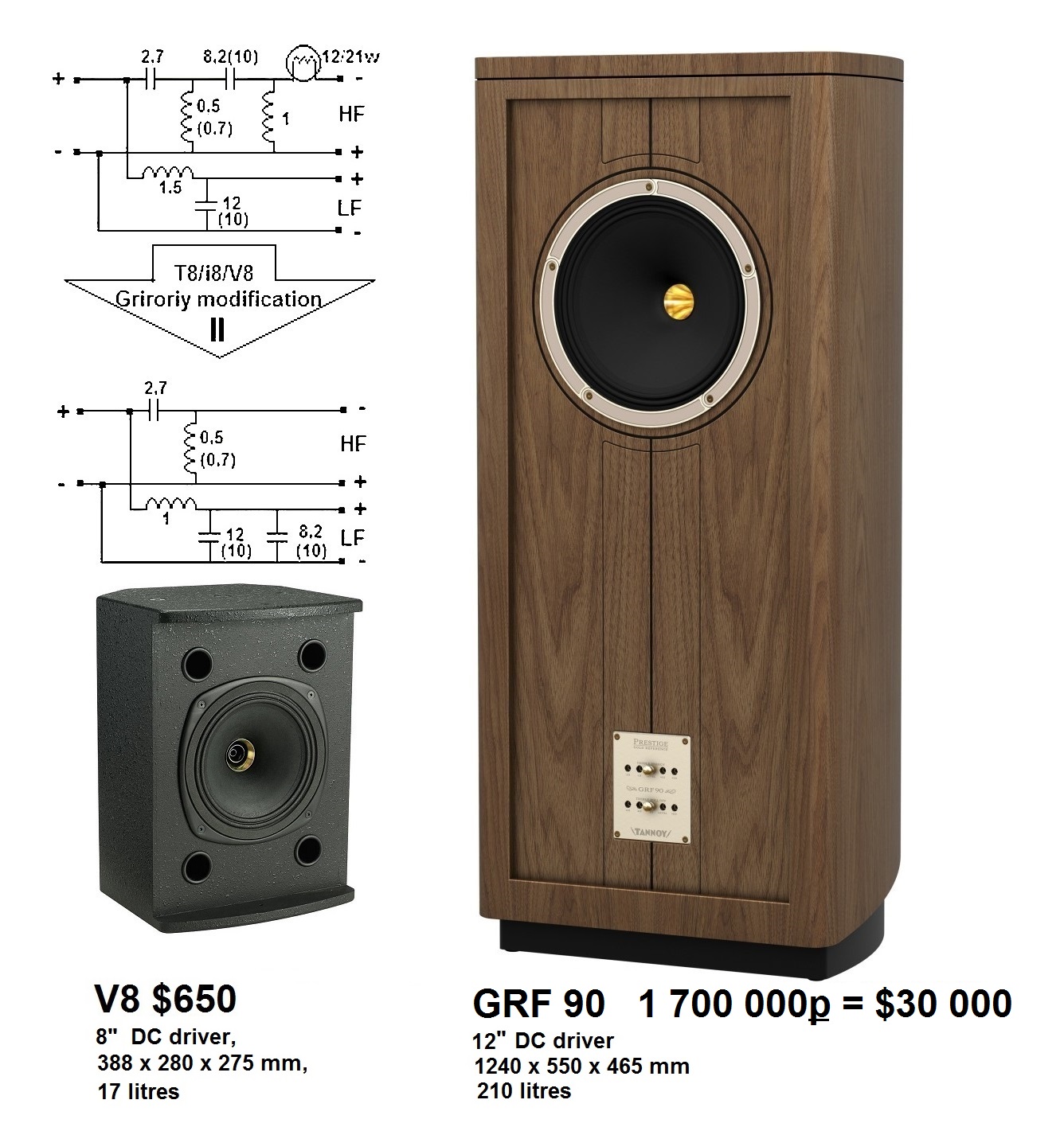 Хорошо звучит . . . Да это просто кошмар какой то! Невнятно-гулкий и одновременно, на атаке, бьющий по ушам, гавкающей гласной "А", в состоящем из одних сибилянтов, скворчащем и бестелесном вокале. Понятно почему, приглашённый Hifi Pig писал:The Ardens a sub £10K , to my ears these are a nicer sounding speaker than the Prestige GRFs £17K(sorry Tannoy) Ведь Arden, даже при той же убогой танноевской настройке, благодаря динамику "Тюльпан", хотя бы не скворчит, как компрессионная "Перечница" GRF 90.