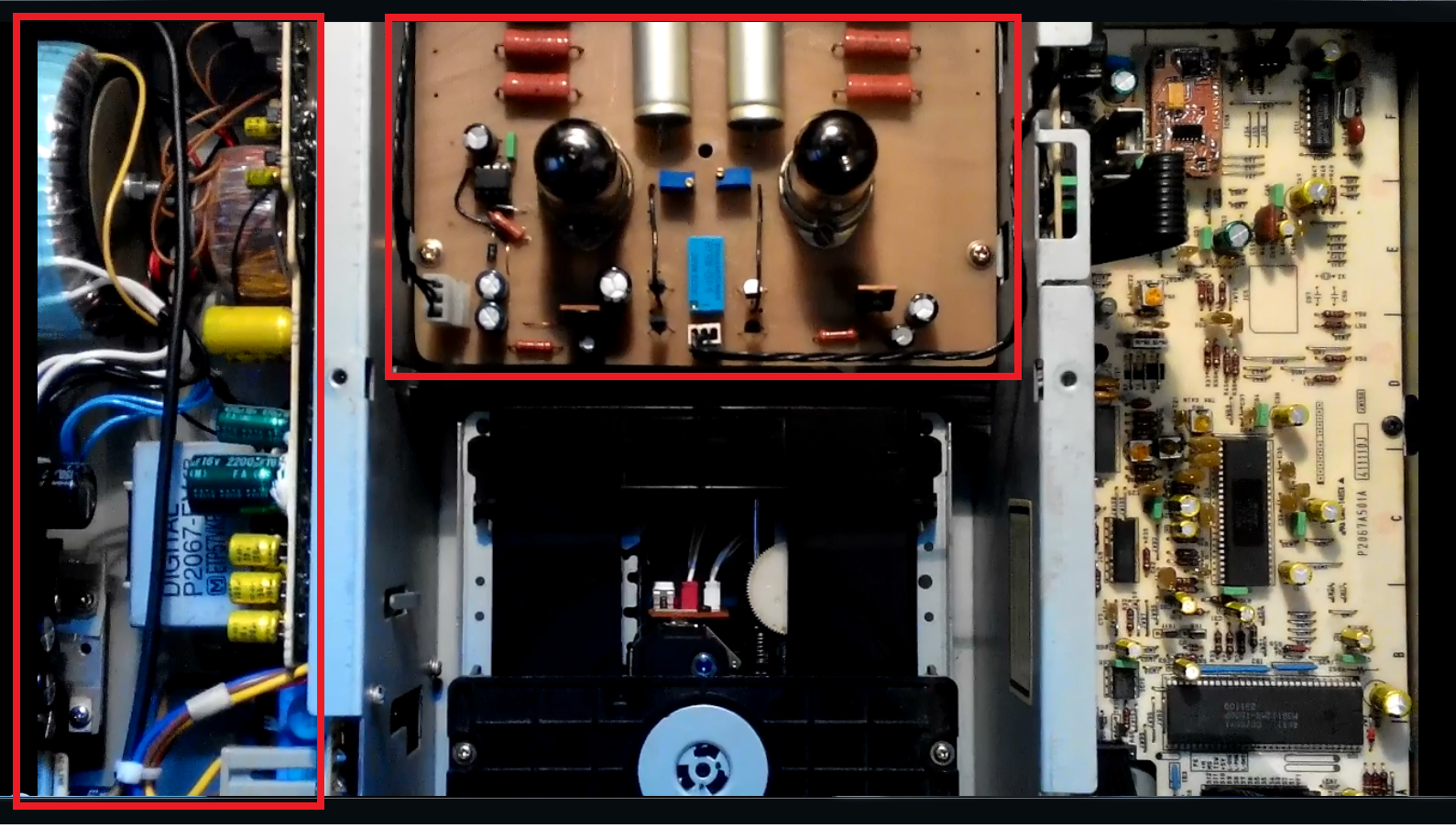 В общем, получил по "Новой почте" этого модернизированного и лампизированного увальня из Днепропетровска ( 9,3 кг по паспорту, а с добавлениями умельца - все 11кг), и притащил домой. Водрузил на стойку, подключил и решил сравнить с моим не топовым Pioneer PD-7070 (5,7 кг) 1987 года, ЦАП BB 56.
