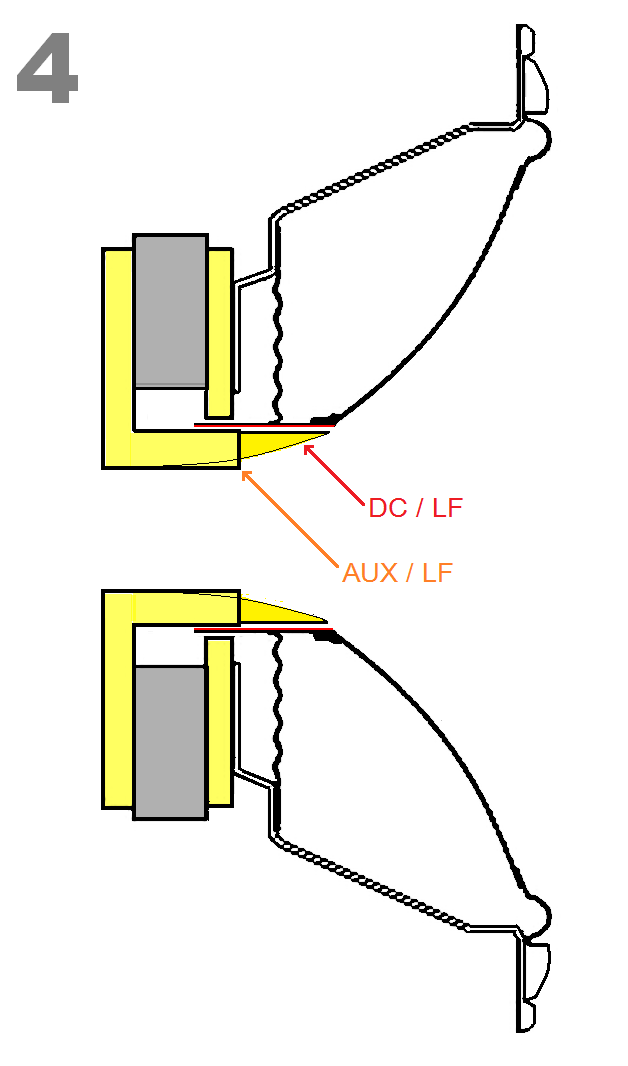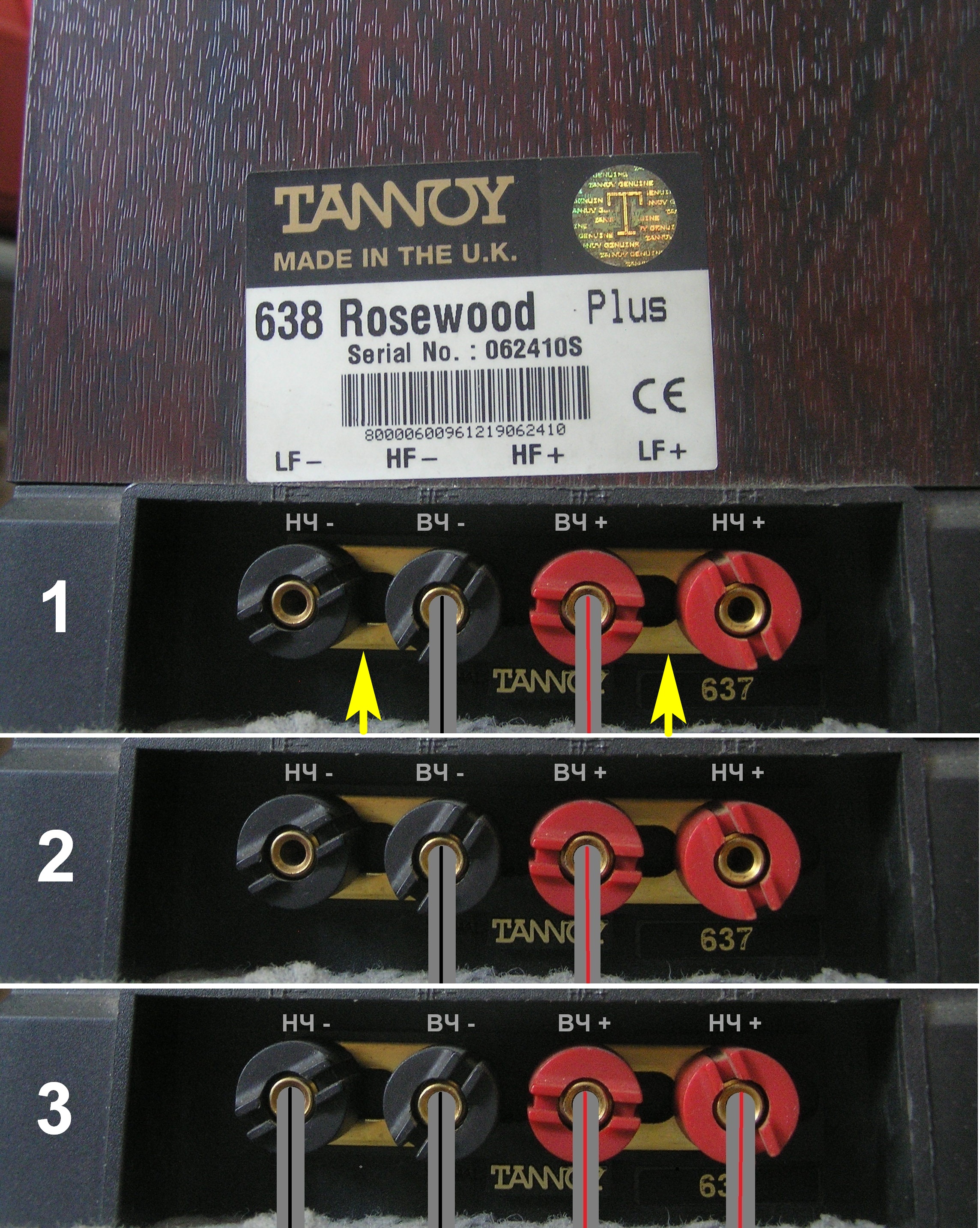 Чтоб убедиться на практике в том, что сторонники теории, что эффект Доплера (моуляция ВЧ сигнала НЧ диффузором) пагубно сказывается на звучании коаксиальных динамиков, несут полный бред. Предлагаю проделать простейший эксперимент: а) отключаете нижний НЧ динамик (красный + и чёрный - повода), б) слушаете АС некоторое время только с коаксиальным динамиком, чтоб привыкнуть к звуку, в) отключаете НЧ провода коаксиального динамика (коричневый + и голубой - ) и подключаете их к соответствующим клеммам нижнего НЧ динамика ( превращая таким образом свои Tannoy, в АС с дискретно расположенными динамиками, чем устраняете пресловутый эффект Доплера, не забыв удалить его заглушку с отягощением (если это полипропиленовый динамик серий: Sixes, Profile, Saturn, Definition 90-х годов), как показано в постах # 1234 и #1235 выше, дабы сделать его идентичным коаксиальному НЧ), г) слушаете, что получилось . . . убеждаетесь, что все картинки поста # 1212 справедливы и (уверен) посылаете этих доплеровских словоблудов - куда подальше.