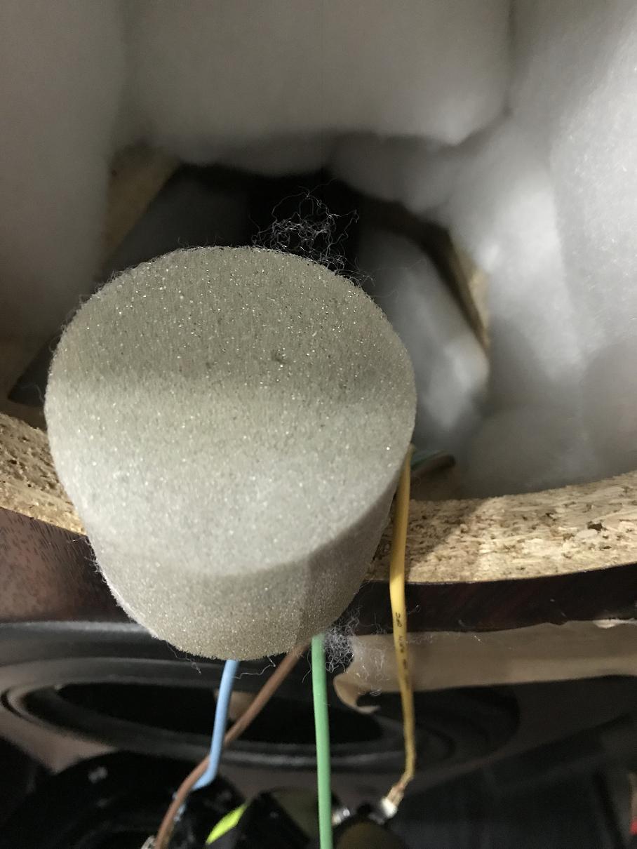 Вот вытащил поролон из перемычки. Ещё одна там валялась. Наверное затычка из фазика. По ощущениям гула стало меньше. Пока не понял(это просто с пулями). Сейчас вторую вскрою и послушаю. Меня этот кусок синтепона смущает. Он прям на пути дырки в перегородке |