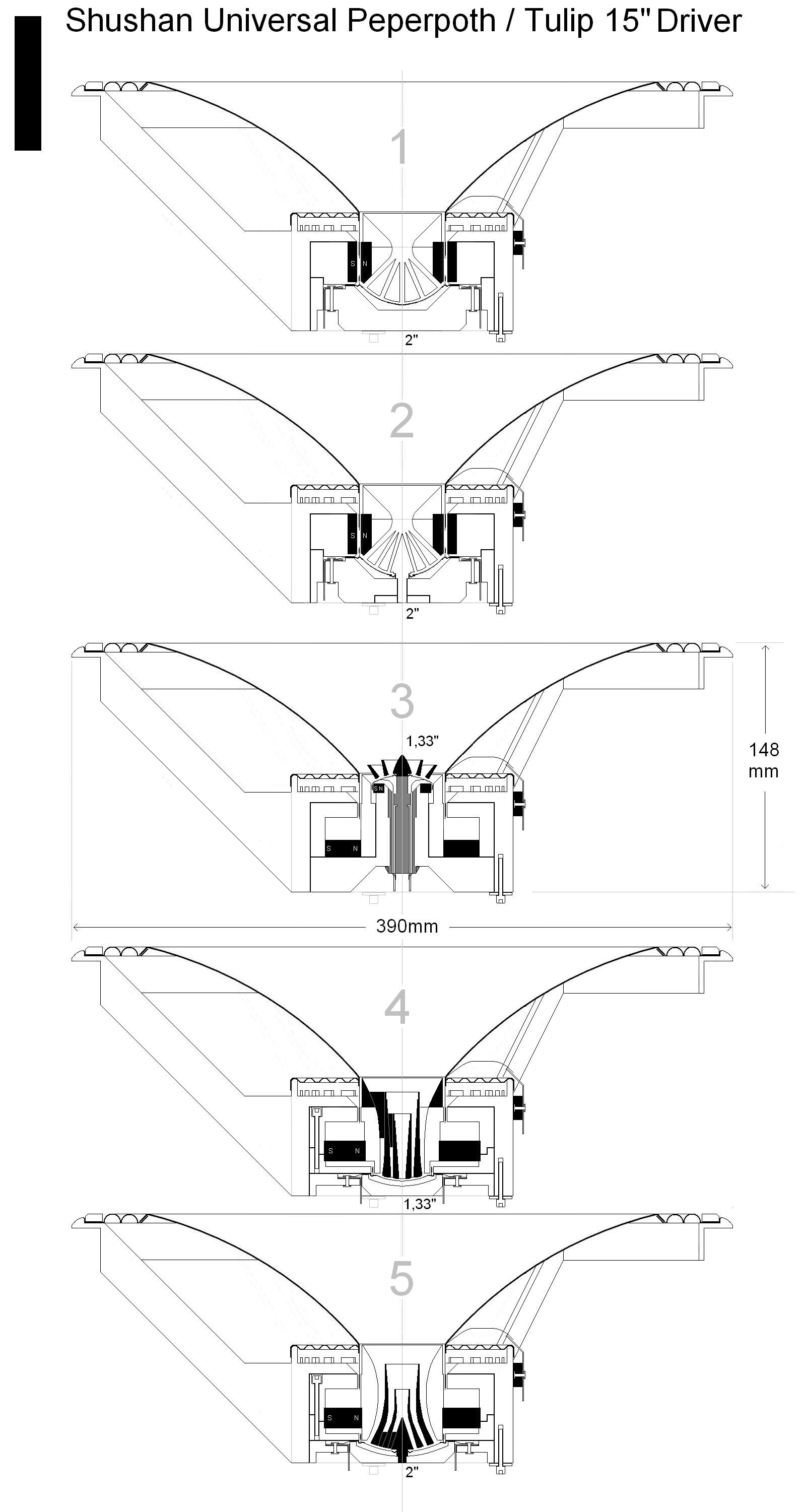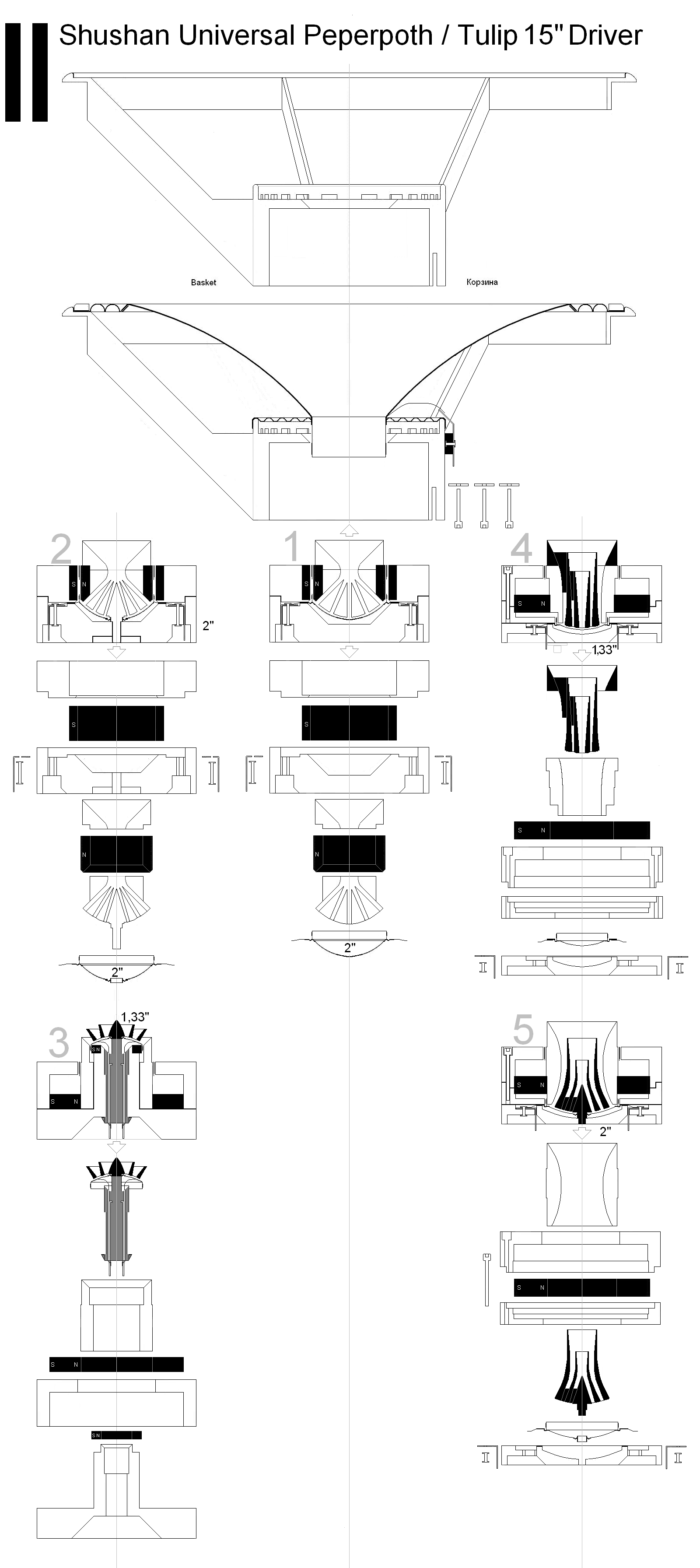Эскиз 5 - "Тюльпан" с максимально отодвинутой назад 2" мембраной и длинными волноводами.