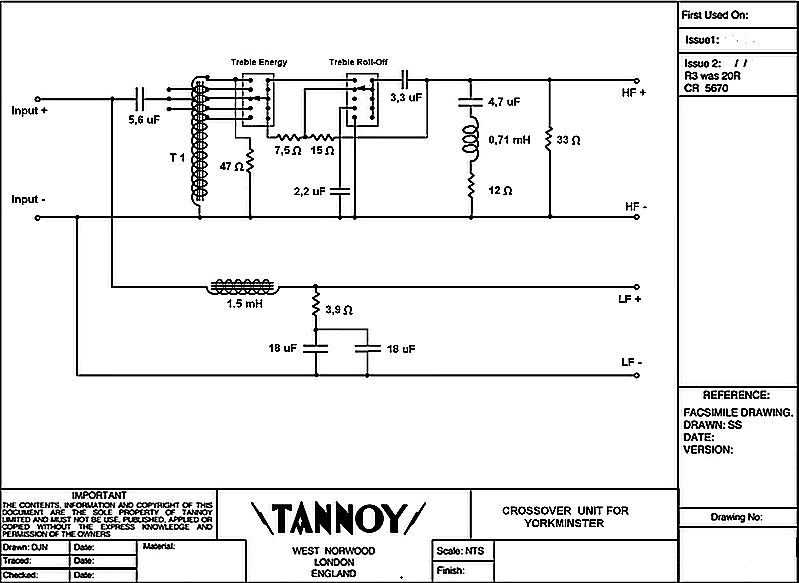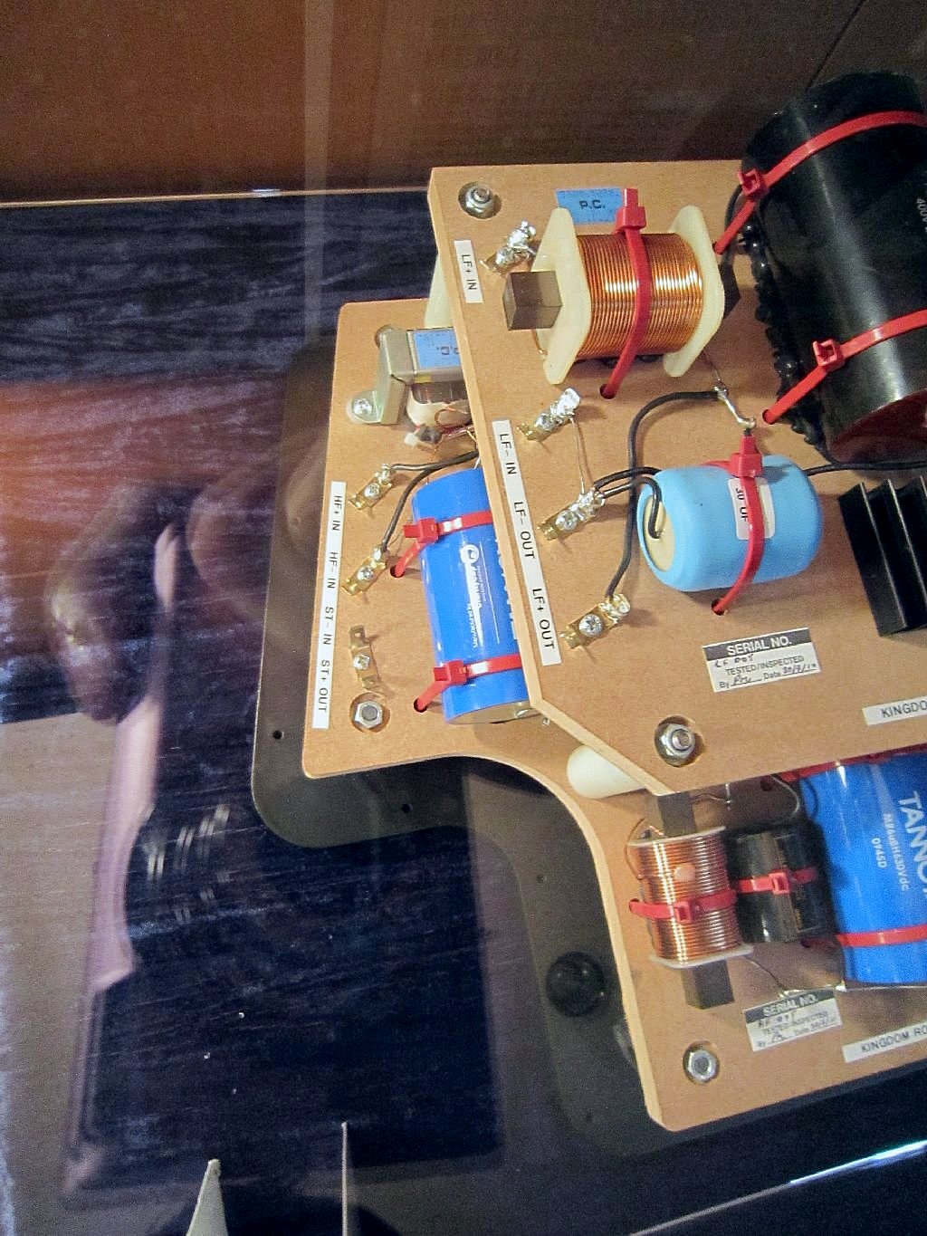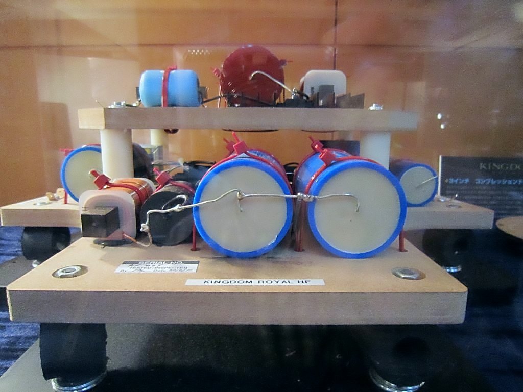 Динамики колонок Tannoy Kingdome Royal подключены через разделительный фильтр, изготовленный методом навесного монтажа из компонентов аудиофильского класса, с использованием серебряного припоя и кабеля Acrolink.