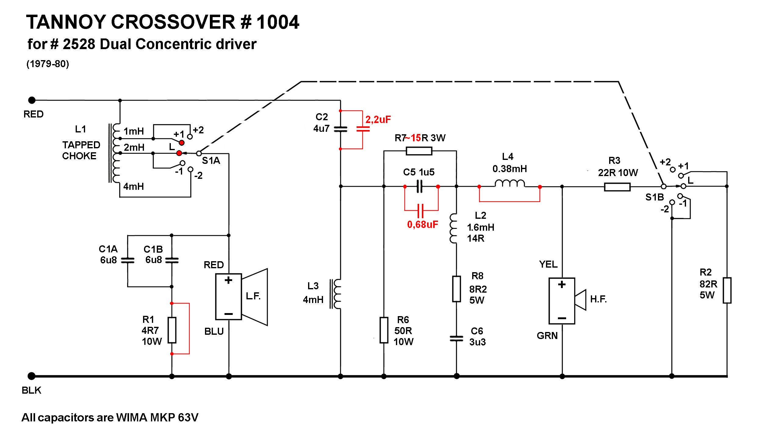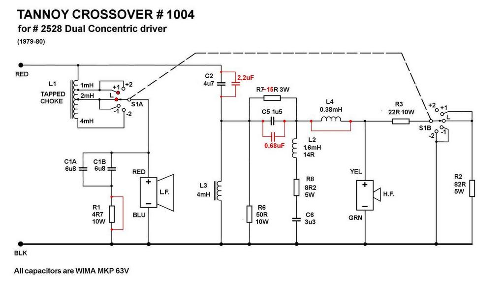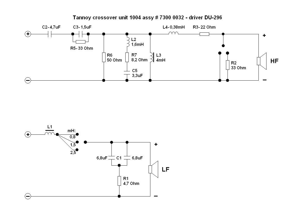 Уважаемые Griroriy, Сегодня я испытаниям. Новый кабинет (150Lt). Загрузите Onken. Порты распределены. Я уже построили свой кроссовер. Я смотрел оригинальные схемы кроссовера. У меня есть хороший взгляд на оригинальный кроссовер. Есть проблема! Есть несоответствия! Driver 2528 (T225 Mayfair) используется кроссовер 1005. два элемента управления, наличие, ролл-офф. На диаграмме я отправил имеет некоторые ошибки. Она имеет номер 1004, но это ошибка. Правильный номер 1005! Есть и другие проблемы: Резисторы имеют различные значения. Я не могу найти 82R! (L-PAD) Реакторы только 3. Driver du296 использовать кроссовер 1004. одного элемента управления. присутствие. Вы можете проверить это с фотографиями. Так что вам нужно хорошо изучить оригинальный кроссовер. Я сделаю это сегодня вечером. Публикация схемы правильной. Спасибо за поддержку. Это образец кроссовера "Tannoy блок 1004 - в сборе номер 7300,0032" для водителя DU296. Он имеет один переключатель. Как мы можем принять меры для улучшения кроссовер 1004 и 1005? Много приветствий Gabriele Dear Griroriy, today I trials. New Cabinet (150lt). Load Onken. Ports distributed. I have already built your crossover. I watched the original crossover schemes. I have a good look at the original crossover. Is there a problem! there are inconsistencies! The Driver 2528 (T225 Mayfair) uses crossover 1005. two controls, presence, roll-off. The schema that I posted has some errors. It has the number 1004, but it is a mistake. The correct number is 1005! There are other problems: The resistors have different values. I can not find the 82R! (l-pad) The inductances are only 3. Driver du296 use the crossover 1004. a single control. presence. You can check this from the pictures. So you need to studying well the original crossover. I'll do it tonight. Publish schemas correct. Thanks for the support. How can we take action to improve the crossover 1004 and 1005? many greetings Gabriele |