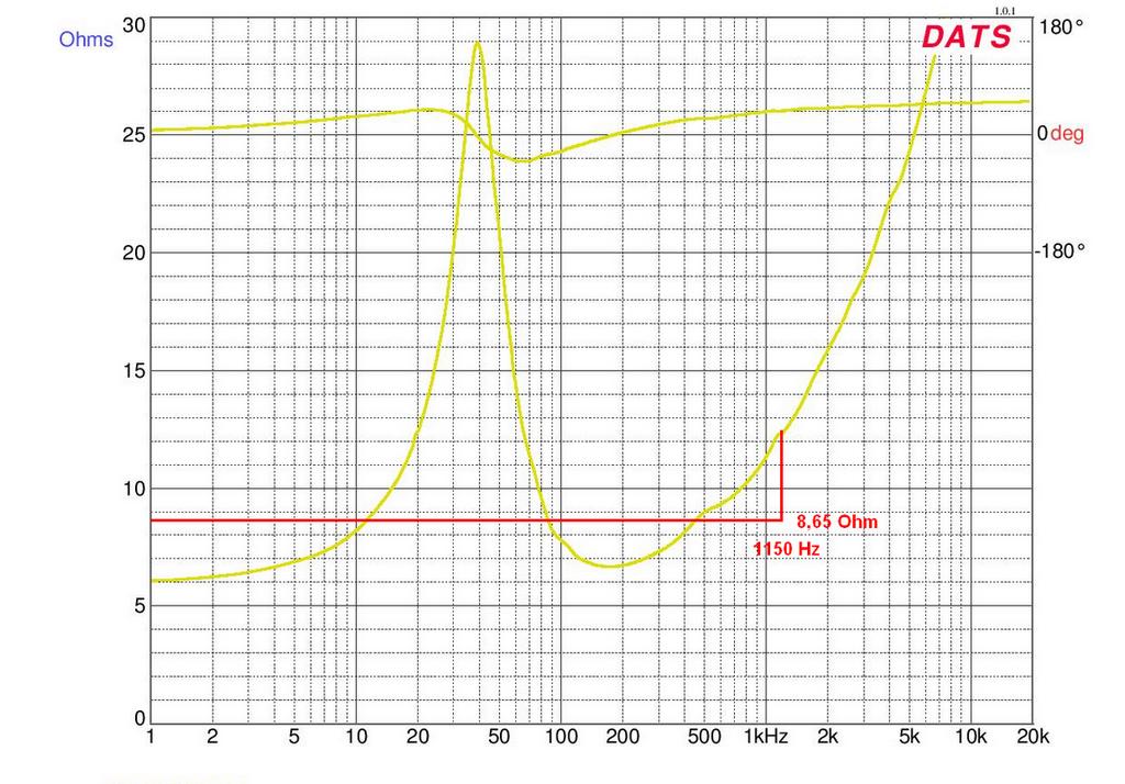 1100 Гц импеданс составляет около 11,30 Ом.