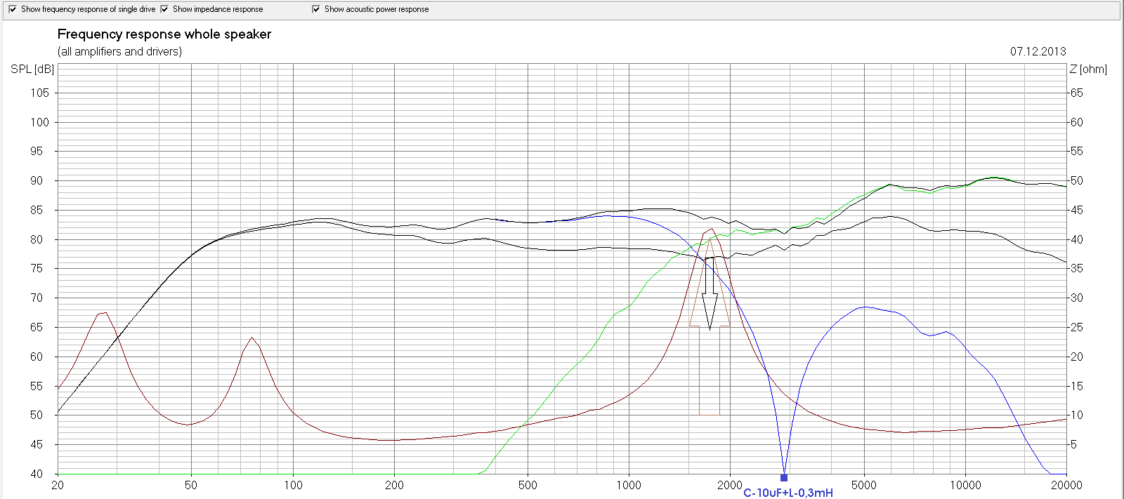 Конденсатор последовательно с НЧ-динамика удается укротить пики при низких частотах .