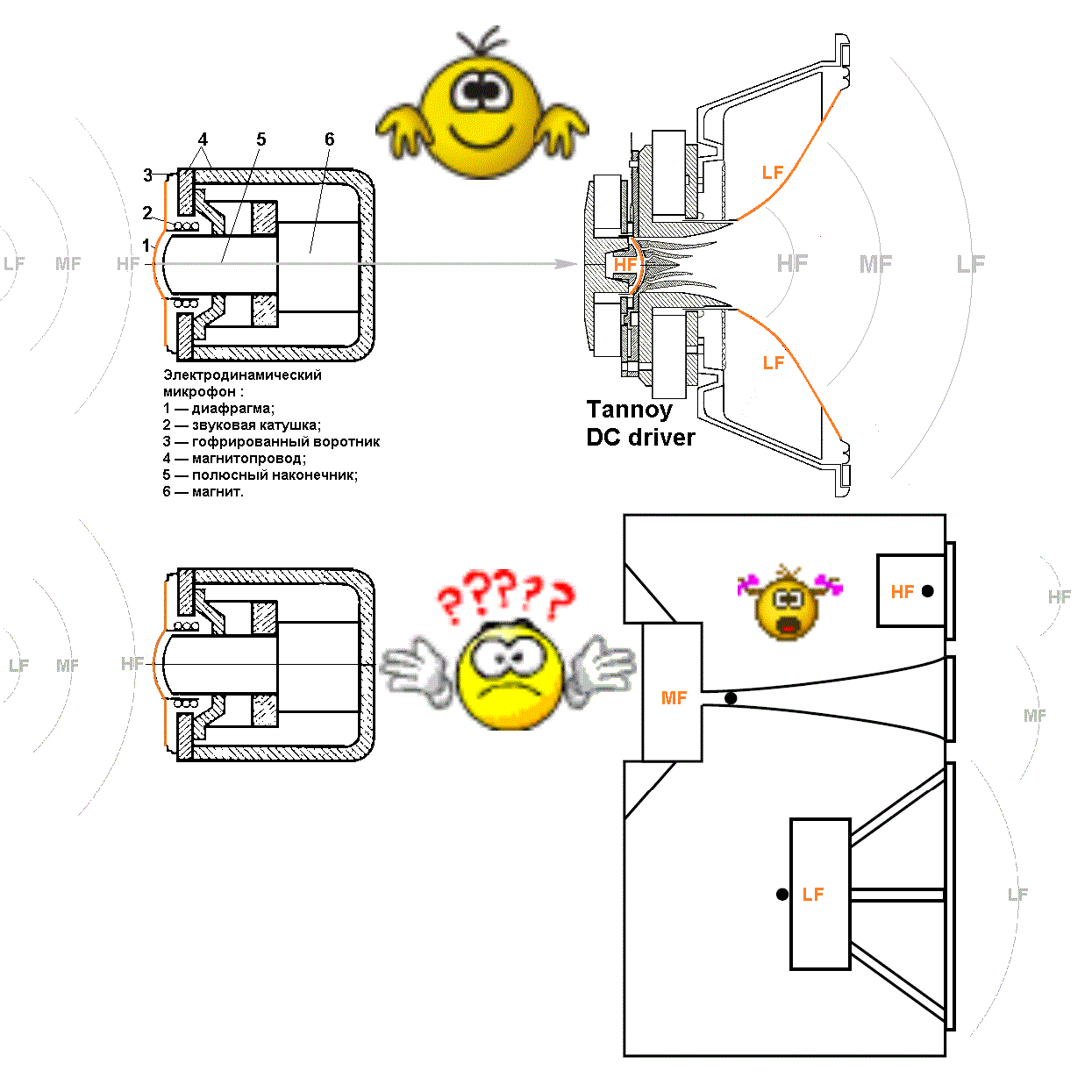 Ниже привожу конкретный пример того, как они, из катушки номиналом 2mH, в обеих сериях DMT, лепят ФНЧ коаксиальных динамиков.(см.рис. IV) Бред какой-то! Это же не детские кубики. Как вообще, до такой унификации (ради того, чтоб большим оптом закупать один номинал катушки) можно было додуматься? Причём, что на 12DMT, что на 15DMT (т.е. при одинаковых пищалках, установленных в рупоры разного размера), может стоять абсолютно тот-же фильтр НЧ. А как-же быть с таким понятием, как частота среза этого самого рупора (Horn Cut), зависящая от размеров его устья, с которой необходимо согласовывать характеристики НЧ фильтра? По крайней мере спасибо хотя бы за то, что хотя бы ФВЧ разные. А то ведь могли бы, как за четверть века до них - в Monitor Gold, что в 12", что в 15", поставить полностью идентичные кроссоверы.