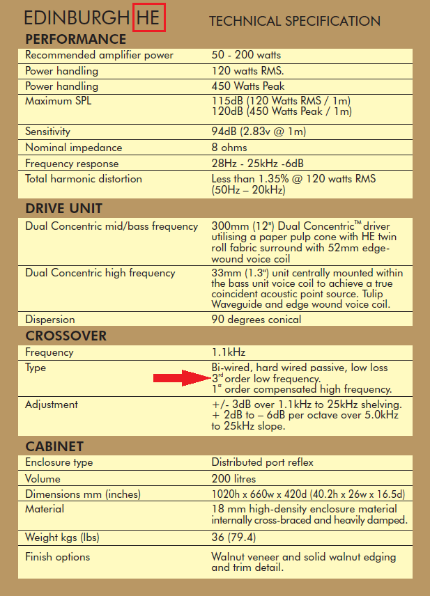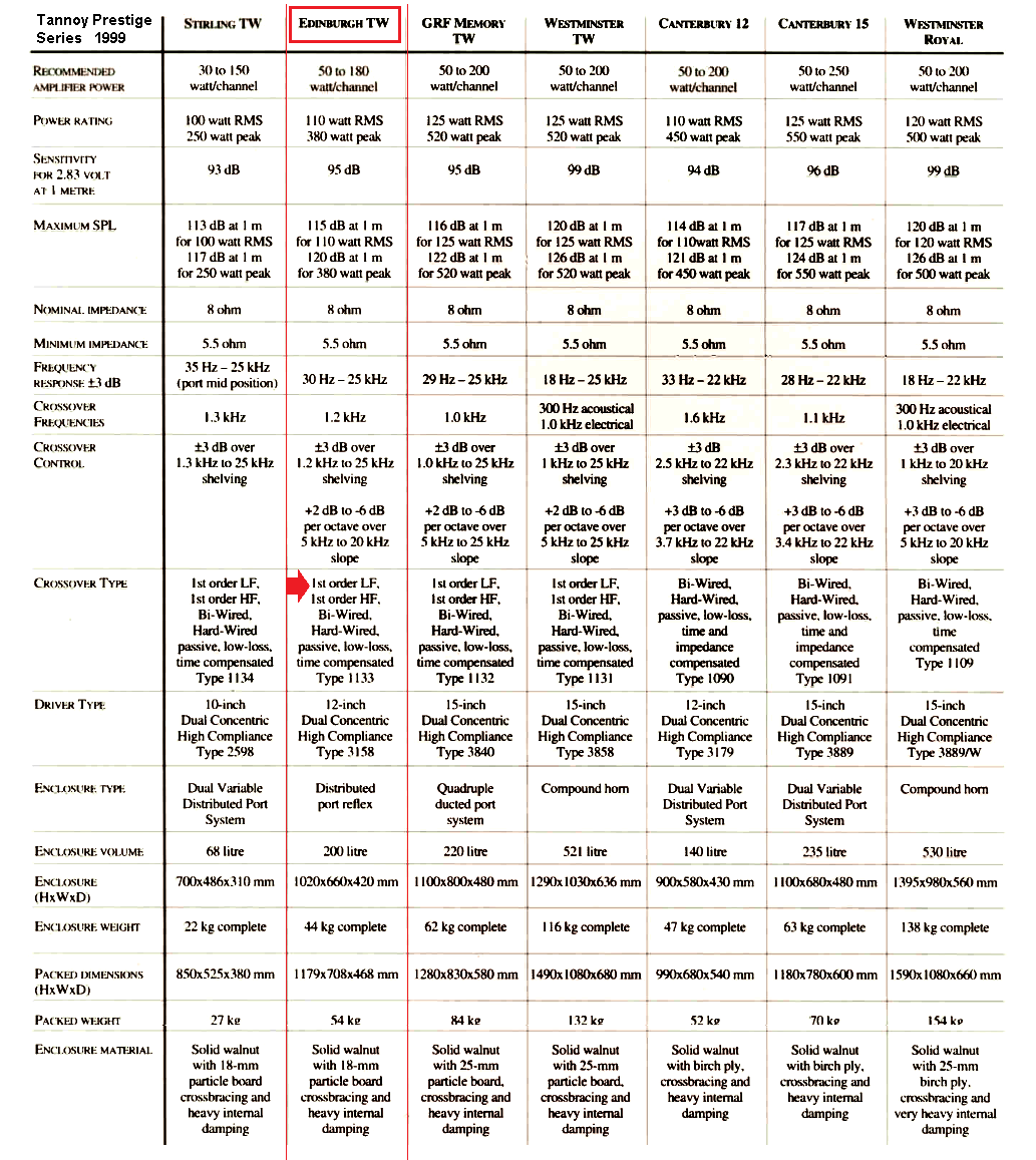 Григорий, здравствуйте. В отношении данных приведённых в таблице Tanniy Prestige 1999 есть некоторые сомнения. Вы в посте #1381 приводили фото и схему кроссовера Tannoy GRF TWW, там очевидно LF - второй порядок. Кстати в Edinburg TW схема кроссовера идентична схемы GFR TWW, отличаются лишь номиналы L и С. HF там первый порядок, а LF - второй.