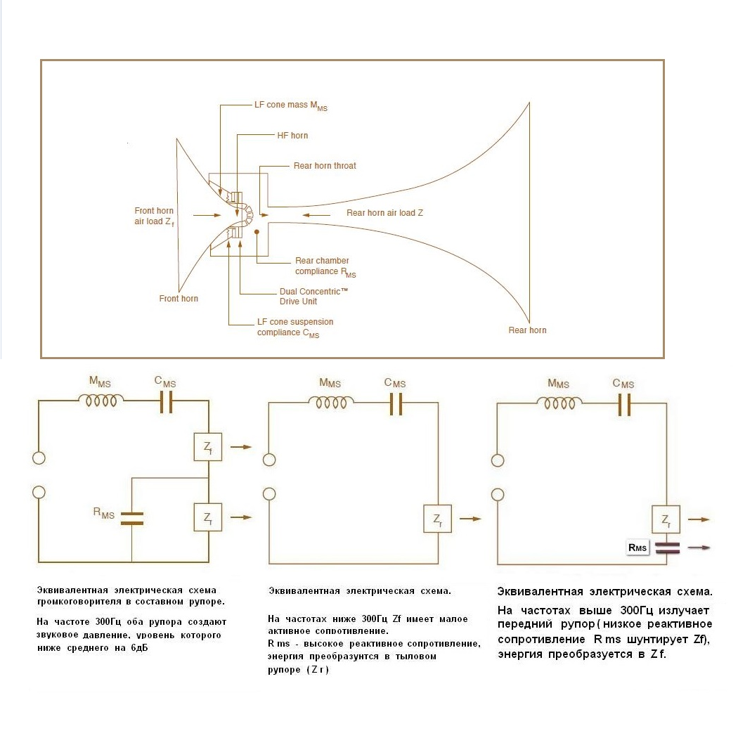 Выходит, что сделав по элементарному невежеству, вместо заднего рупора акустическую пробку, лишили АС нормальных басов и для компенсации сильно возросшей по уровню середины, которую ещё и передний рупор (в отличии от задних функционирующий) усиливает, недолго думая переполюсовали пищалку . . . организовав СЧ провал, на фоне которого НЧ уже было как бы достаточно количественно. О качестве даже думать страшно.