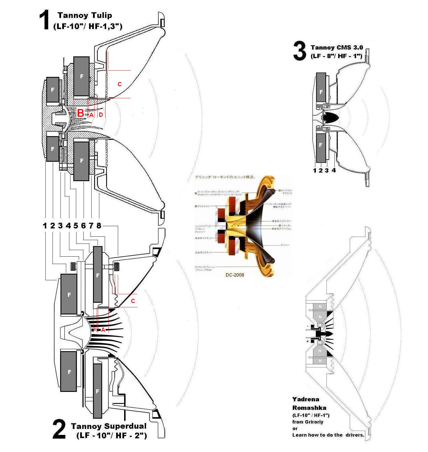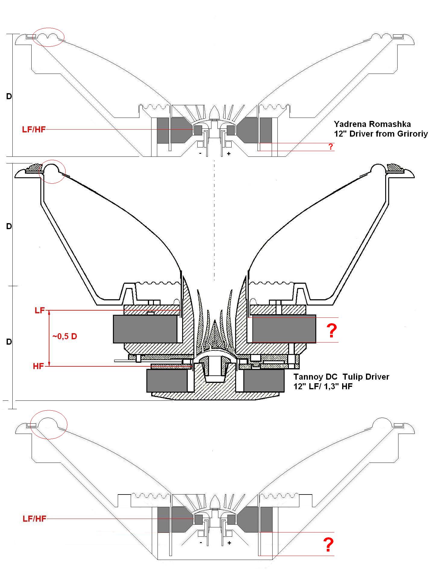 8) не соедует забывать и то, что заглубление ВЧ и применение того или иного типа волновода сделано не только из соображений совмещения "центров излучения" НЧ и ВЧ звеньев, но и исходя из критерия минимизации эффекта модуляции ВЧ диффузором НЧ. В первом варианте очевидно, что никаких мер к минимизации этого вредного эффекта нет.