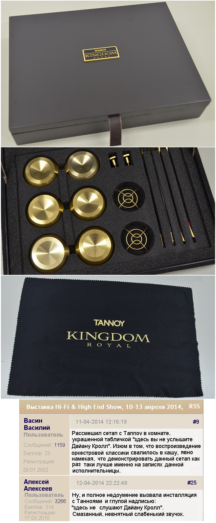 Но видимо новая фишка, в виде криогенной обработки всего и вся, затронула, причём не в последнюю очередь и их мозги. Намёков они не понимают и тупо продолжают гнуть свою линию. Явно убеждённые, что именно в нахождении заветного цвета и есть залог успеха в деле воспроизведения музыки. Ну прямо ожившие персонажи крыловского "квартета". В итоге, выпускают очередную версию своих "шедевров", не забыв при этом оценить замену "позолоты" на никель и закрашивание всего остального чёрным, а также ещё более "гениальное" название (хотя казалось бы, куда уж дальше "Царства Королевского"), в дополнительные $30 000. То-есть, поступая ровно наоборот от того, чего требует элементарная логика и во что их, уже буквально носом тычет реальность. А именно, в настоятельную необходимость, привести к вменяемым, следующие пункты - обратившись к: