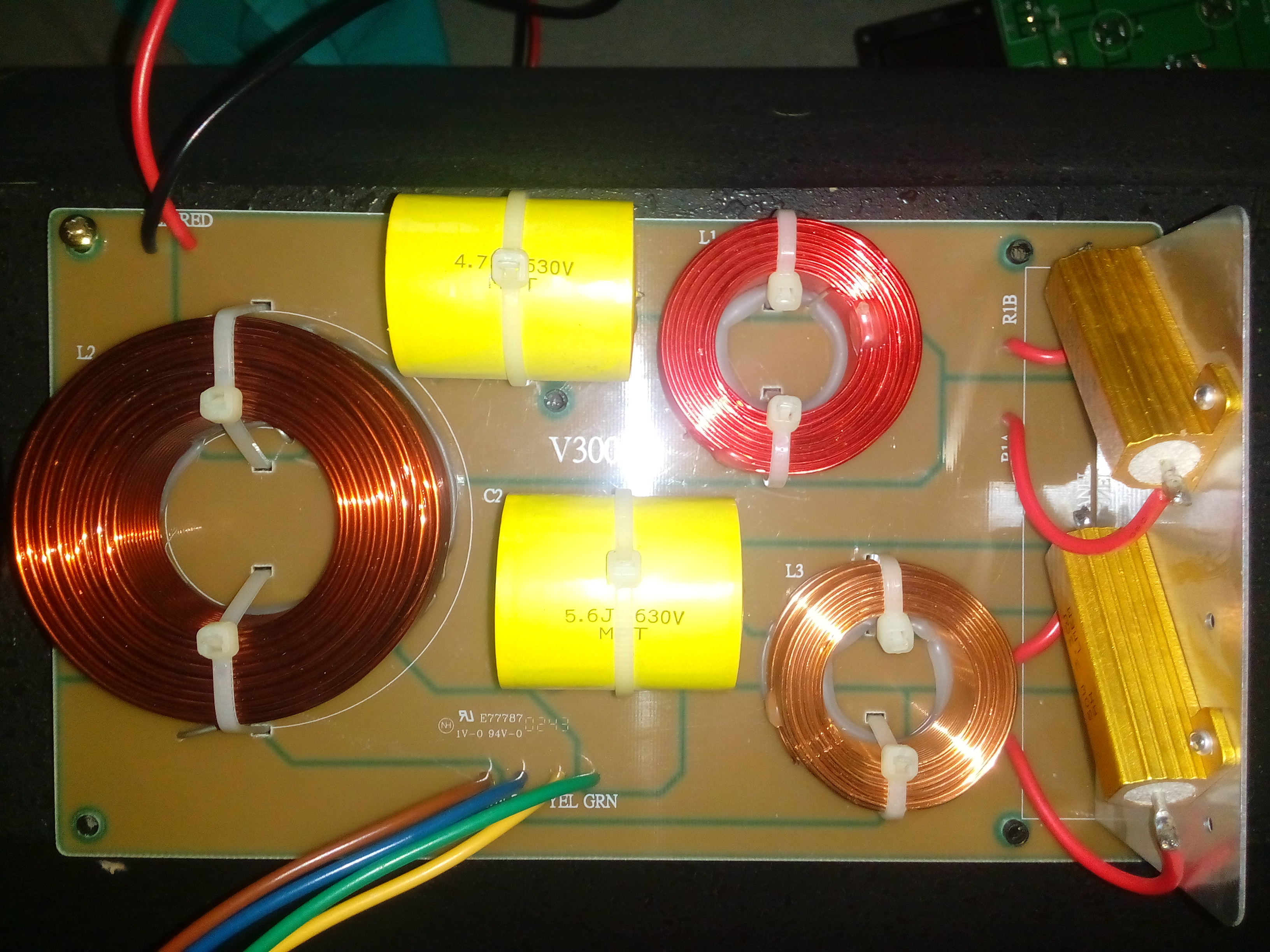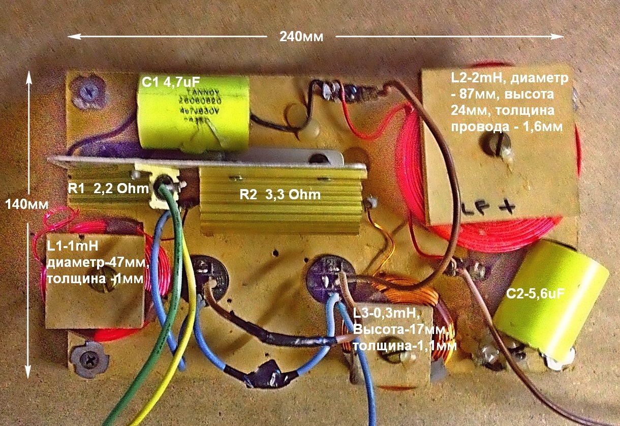 Ниже, фотография кроссовера, его схема, АЧХ эмулятора согласно схеме. А также, схема модификации и её АЧХ на эмуляторе, отзыв на которую, Вы читали тут Скорее всего, Ваш кроссовер, аналогичный.