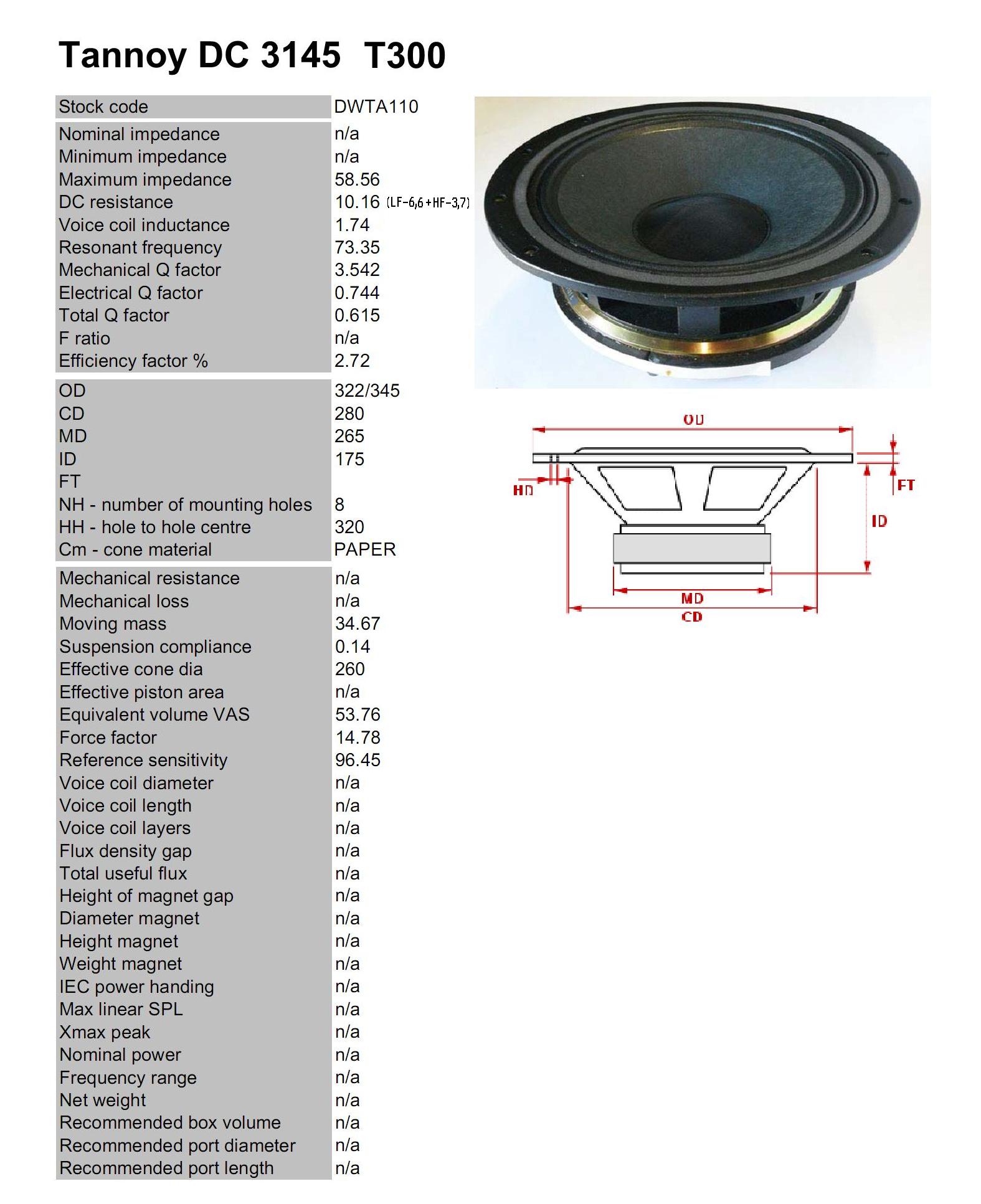 Игорь Доброводский пишет: Здравствуйте. Приобрел Tannoy V300, не могу найти характеристики динамика . Нашел , что там стоит динамик 3138. Звучание , нравится, сравниваю с CPA-12, эти намного интересней, правда верх приходится немного придавливать. Если у кого есть инфа по этому динамику, и схема кроссовера, поделитесь пожалуйста.